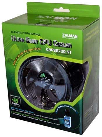 Не так давно мы познакомили вас с новой топовой моделью от одного из лидеров компьютерного кулеростроения — процессорным кулером Zalman CNPS9700 LED. Этот кулер продолжил плодотворные дизайнерские находки прежней серии CNPS9500 и, прибавив в размерах и весе, смог поставить новые рекорды по теплоотдаче и бесшумности охлаждения топовых настольных процессоров, намного опередив в этом большинство именитых предшественников. Однако производитель недолго почивал на лаврах — ведь динамика развития отрасли требует регулярного обновления линейки своих продуктов, чтобы поддерживать на должном уровне интерес потребителя. Понятно, что часто изобретать что-то кардинально новое сложно. Поэтому инженеры Zalman пошли проторенной дорожкой — слегка модифицировали уже раскрученную модель CNPS9700 LED (действительно, не пропадать же такому великолепию), «добавив» в нее цветовую гамму Nvidia (стильное «асфальтовое» анодирование и зеленую подсветку), изменив вентилятор (теперь с PWM-управлением скоростью) и сменив имя на CNPS9700 NT. В результате «продуктом непротивления сторон» стал клон 9700-го, основные сходства и отличие которого от «прародителя» мы и постараемся выяснить далее.
