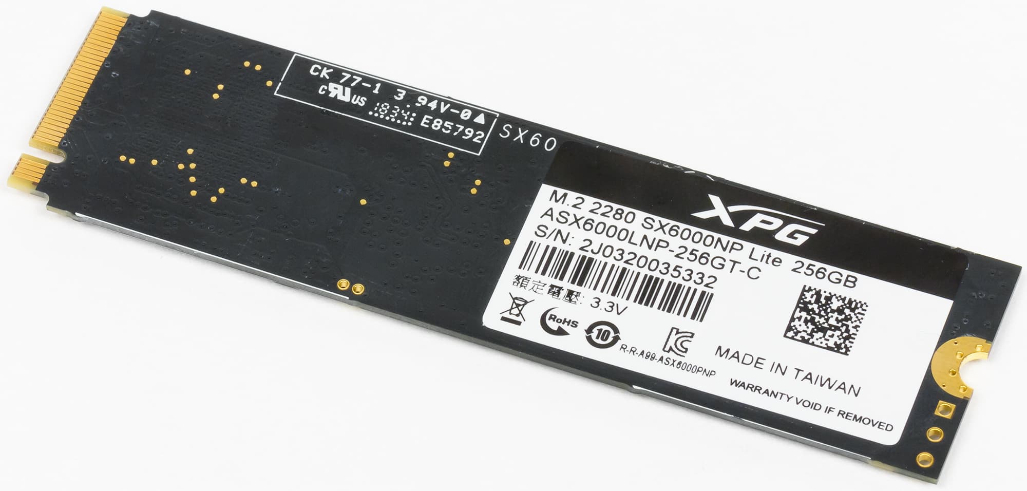 Собственная маркировка — следствие того, что Adata (как и некоторые другие производители) часто закупает не готовые чипы, а пластины: которые для экономии сама режет, тестирует и упаковывает. Некоторые покупатели опасаются «фирменного» контроля качества, больше доверяя «исходному» (производителем флэша), но особых оснований для этого у нас, например, нет. И что стоит в Pro — в общем-то, известно: 64-слойная TLC 3D NAND производства Micron с кристаллами по 256 Гбит.