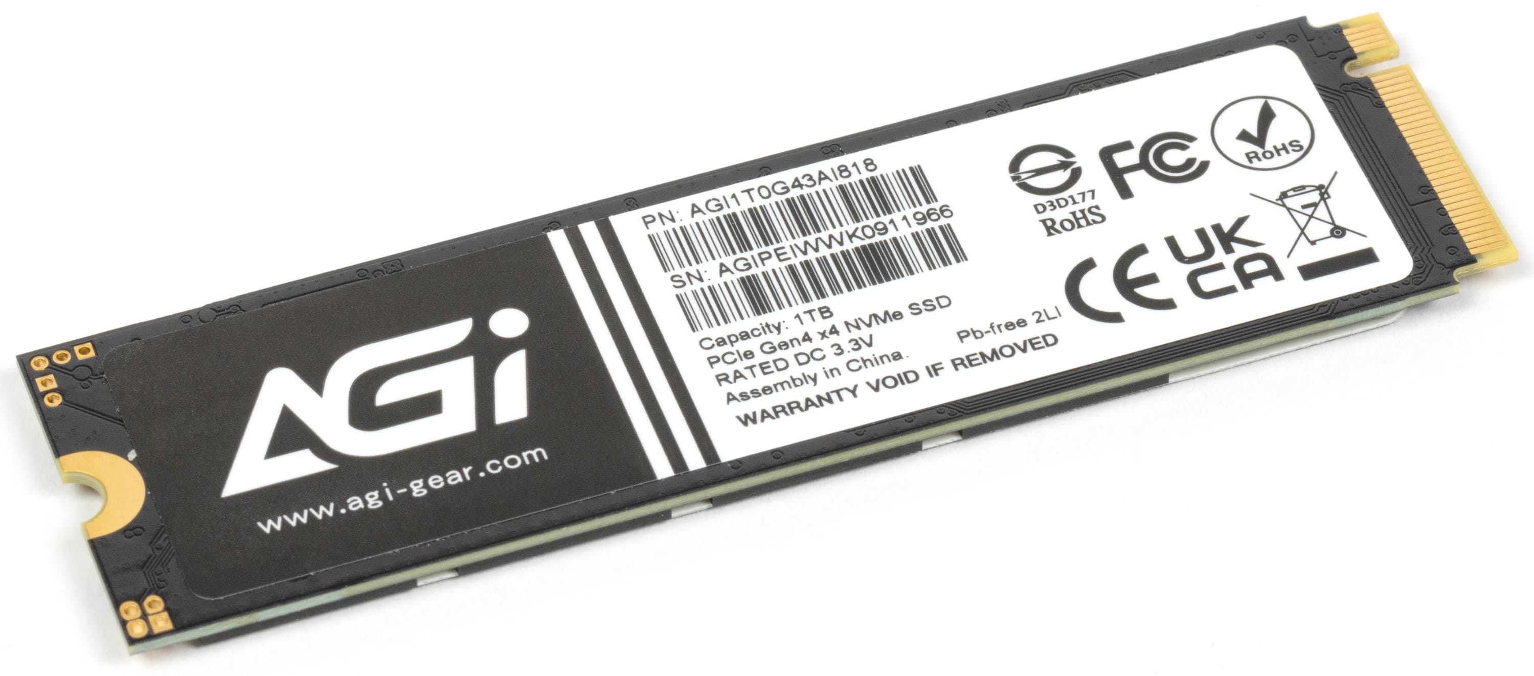 Компания относительно молодая, так что огромного количества SSD к этому моменту навыпускать не успела, хотя и весь актуальный ассортимент присутствует. Подобная ситуация теоретически способна привести к простоте и однозначности наименований моделей, но... сложности с неймингом — вечная беда производителей из обоих Китаев: и материкового, и островного. Например, линейка с не особо запоминающимся названием AI818 на практике представляет собой два разных семейства, общего у которых лишь использование четырехканальных безбуферных контроллеров с поддержкой PCIe Gen4. Если бы нам попалась модель с артикулом AGI1T0G44AI818, то это была бы давно и хорошо изученная платформа из Maxio MAP1602 и 128-слойной памяти YMTC (до последнего времени было так).