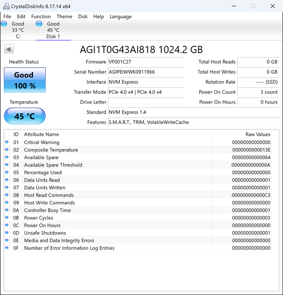 | AGI AI818 1 ТБ | 2723,2 | 2746,8 |