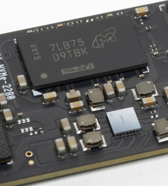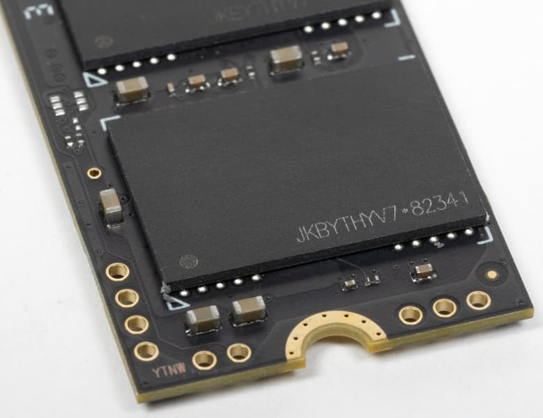 В общем, имеем такой комплект из контроллера, DRAM и флэш. Конкретно это 176-слойный 4-plane TLC SK Hynix с кристаллами по 512 Гбит, что дает четырехкратное «внешнее» чередование и при емкости 2 ТБ. Так что по скорости это должно быть как минимум не хуже, чем предыдущие версии платформы. Не исключено, что и лучше.