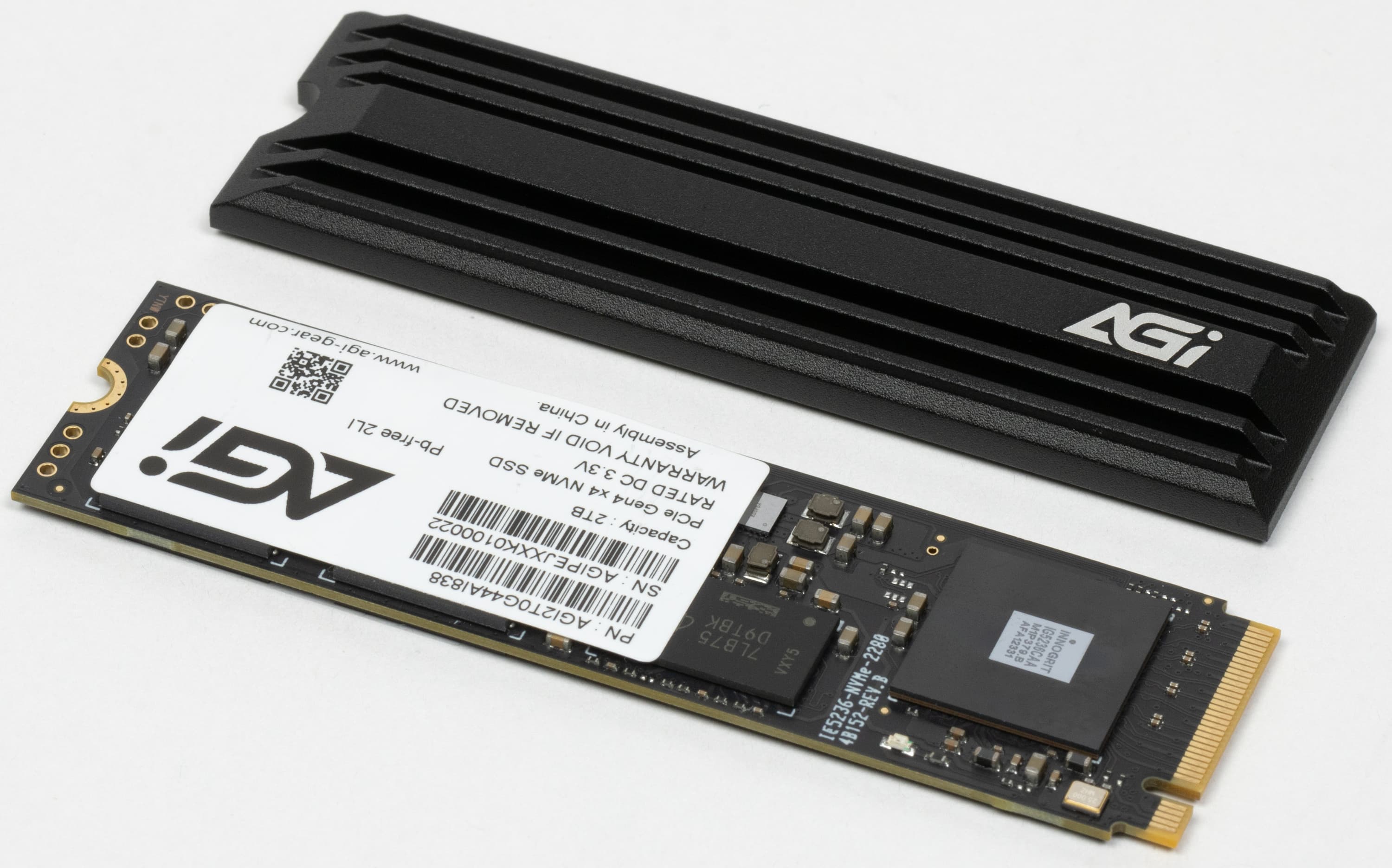Простота наклеек связана с тем, что для IG5236 изначально настоятельно рекомендовалось использование радиаторов. Но устанавливать его на накопитель по умолчанию смысла нет — многие платы снабжены штатной системой охлаждения слотов M.2 (а в те, где таковой нет, обычно устанавливают и SSD попроще).