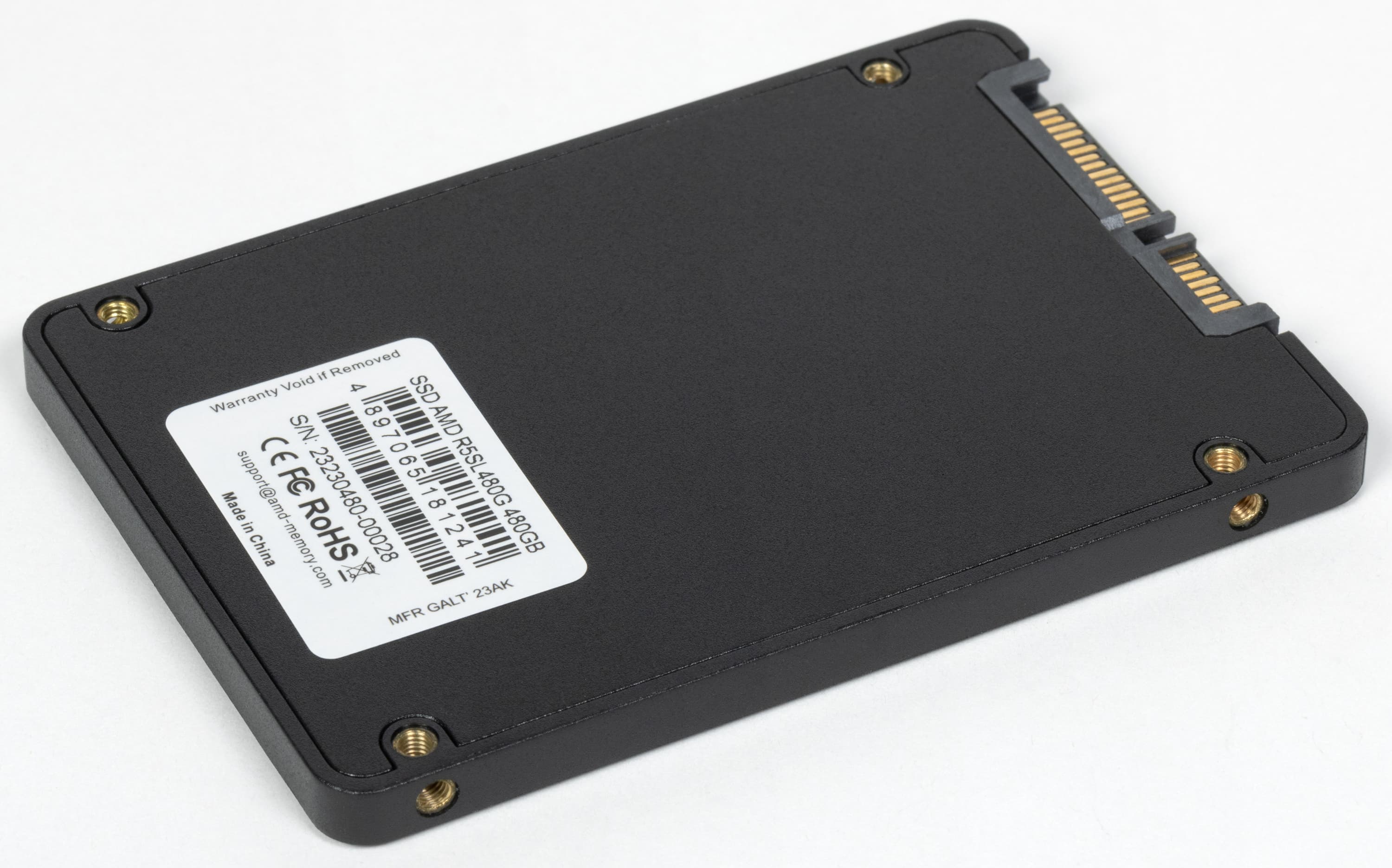 Традиционно напомним, что к AMD эти SSD имеют отдаленное отношение. Просто компания в свое время разрешила использовать на этом рынке свою марку гонконгской Galt Advanced Technology, ставшей известной широким массам трудящихся после заключения соответствующего соглашения. Выпускается под ней много разного, R5 — практически самая простенькая серия, но, однако, TLC в накопителе от середины лета мы еще нашли. Не со всеми так повезло.