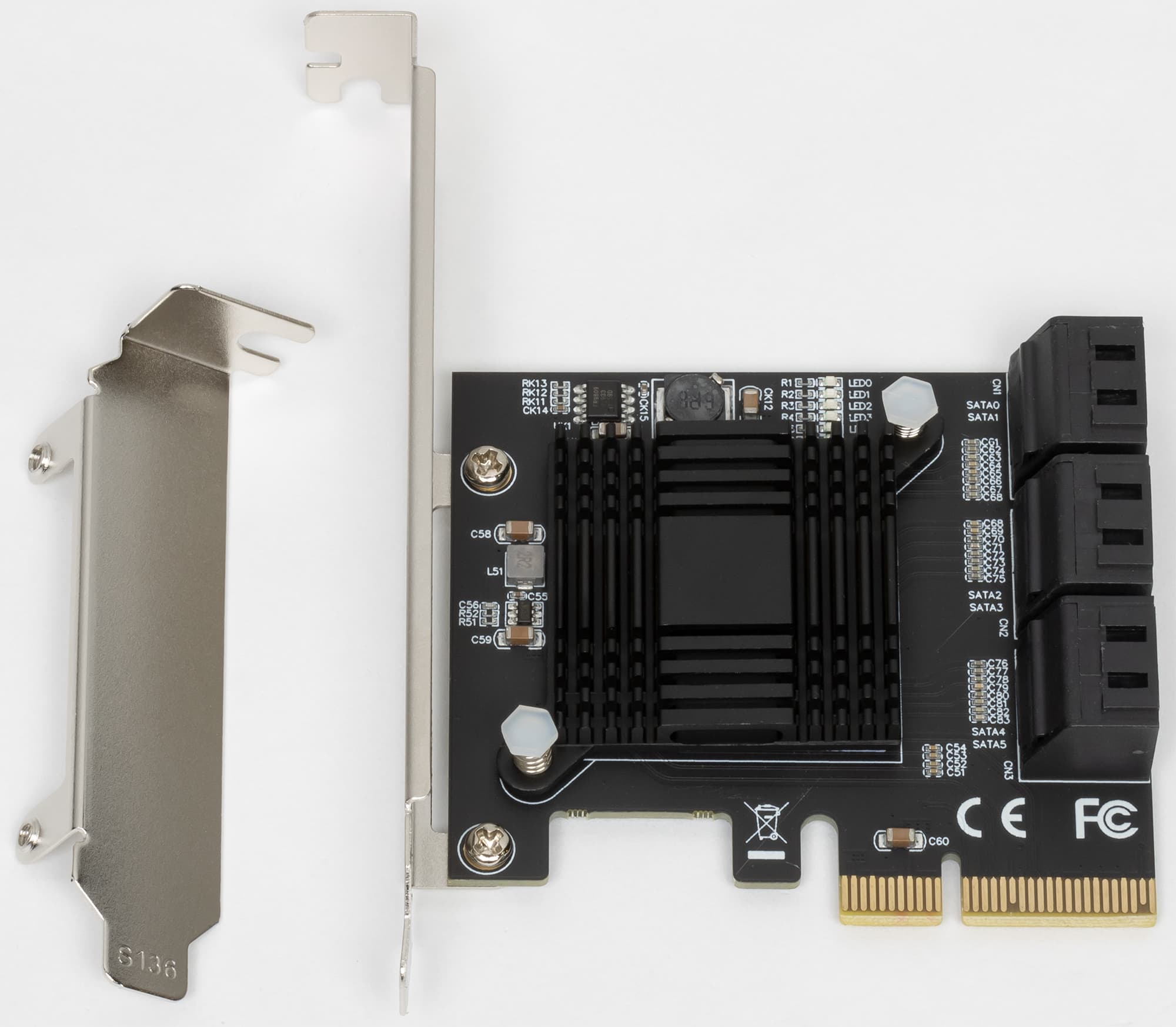Однако пусто место свято не бывает — раз появилась проблема, то появляются и решения. К концу десятилетия производители подсуетились: на рынок вышли решения с поддержкой PCIe 3.0. Первыми отстрелялись в JMicron: компания выпустила двухпортовый JMB582 и JMB585 (на AliExpress продавцы обычно называют его «JMS585») на пять портов. Интерфейс — PCIe 3.0 x1 у первого и PCIe 3.0 х2 у второго. Одной линией можно обойтись, потому что PCIe 3.0 x1 по пропускной способности равен PCIe 2.0 х2, так что хотя бы для одного устройства всегда можно обеспечить полную скорость SATA600. «Курс обмена» портов на линии — лучше, чем у 9235. Да и чем у 9215 по большому счету тоже: JMB585 опять же может обойтись и одной линией (потому как PCIe 3.0) в «пропиленном» или просто «длинном» слоте х1, предоставив пользователю пять SATA-портов. Подчеркнем: каждый из этих SATA-портов даже в таком случае может работать на полной скорости.