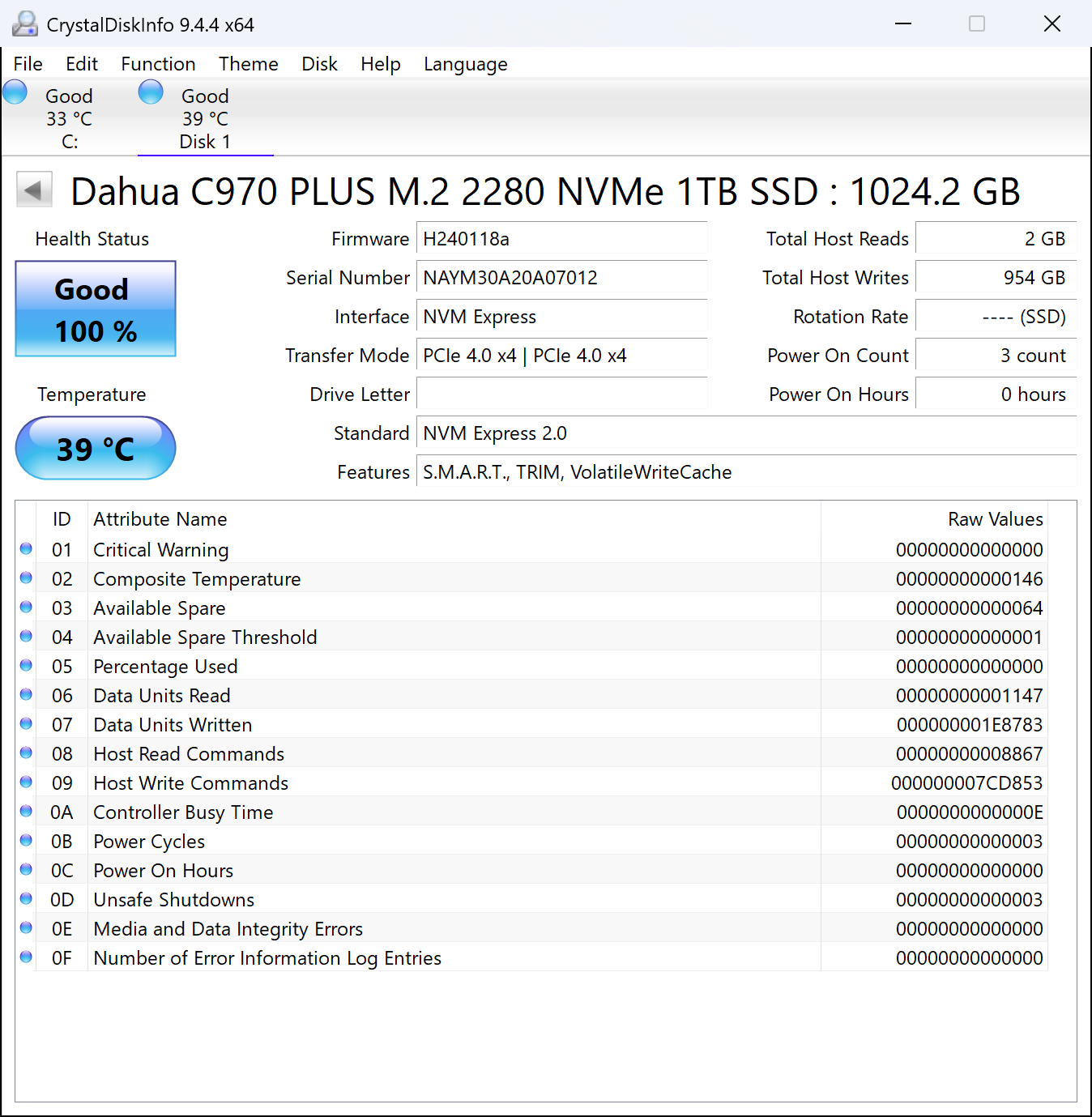 В MiWhole CT300, например, всё работает. Чем грозит отсутствие поддержки глубокого сна, понятно уже по формулировке — бо́льшую часть времени SSD всё равно простаивает, так что будет бесцельно тратить энергию, если не умеет спать. В настольном компьютере это проблем не составляет, пользователю ноутбука лишнее энергопотребление и (пусть и небольшой) дополнительный нагрев точно не нужны. Поэтому для такого использования лучше покупать модели, где с поддержкой ASPM проблем нет. Справедливости ради, их таких на рынке большинство. Даже среди основанных на этом контроллере много. Но не все. Dahua C970 Plus попадает как раз в неудачную группу — как видим, бренд тут значения не имеет.