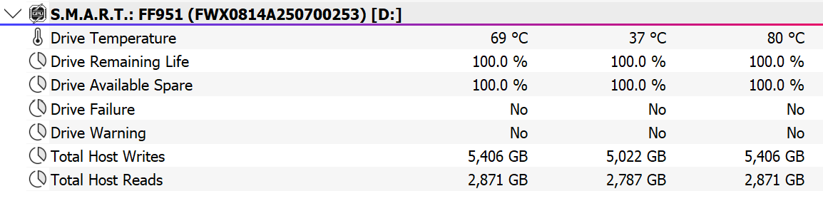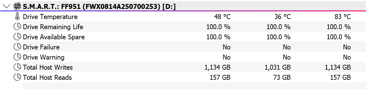 Здесь уже не всегда укладываются, но критичными оказываются другие факторы. Во-первых, интерфейс — удвоить скорость не получается, но радикально ее увеличить — вполне. Во-вторых, работа несколько более сложная, так что тут уже Fanxiang F951 приходится бороться с перегревом. Что, впрочем, на фоне первого не принципиально — ранее всё равно ничего подобного в такие размеры не помещалось, но компактные модели всё равно были более популярными. Сейчас — тем более будут.