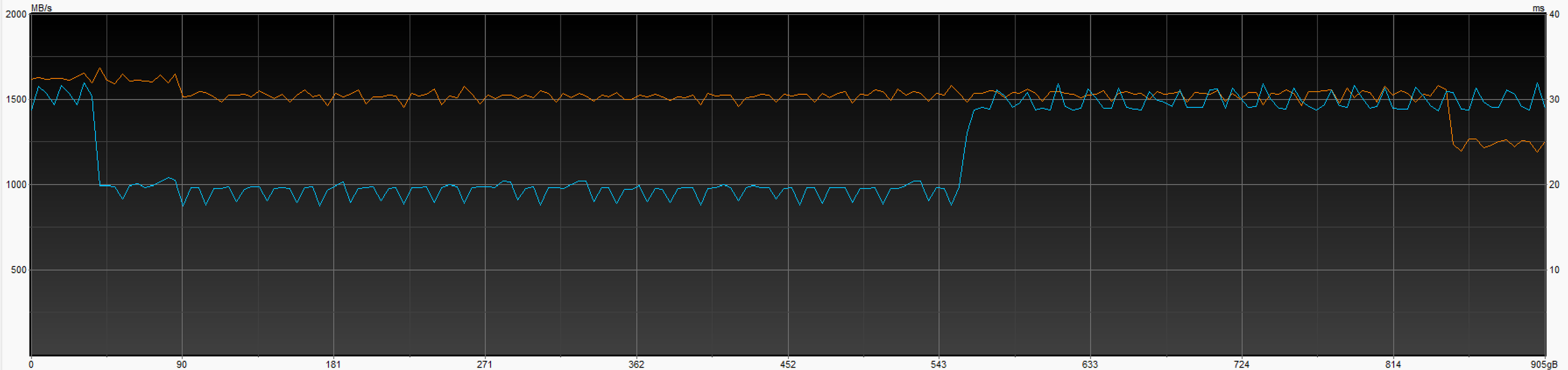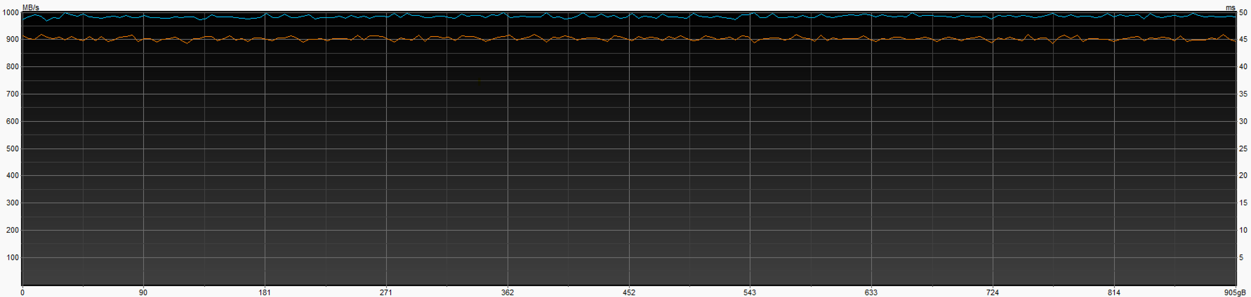 Да и особая информативность сегодня не требуется, поскольку мы изначально знаем, как должен выглядеть идеальный график. И то, что его можно получить в теории — тоже знаем. Теперь можем убедиться в том, что F951 в режиме Gen2 рисует его на практике. Это действительно идеал — когда скорость целиком и полностью упирается в возможности интерфейса, чему ничто не мешает. Память оказалась достаточно быстрой...