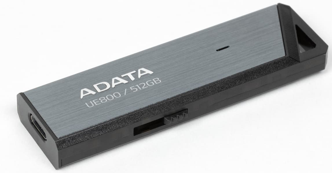 Вследствие последнего очень актуальным является сравнением с чем-нибудь тоже маленьким из прошлых коллекций. Ничего такой емкости мы не тестировали, поскольку со старыми прошивками гоняться за ней большого смысла не было, зато в Adata Elite UE800 установлена та же память. О равенстве скоростных характеристик речь всё равно изначально не идет — они у новых моделей по определению выше. Вот и посмотрим — насколько выше. Отметим также, что UE800 Adata тоже позиционировала еще просто как быструю флэшку. И, в отличие от некоторых своих внешних SSD на той же платформе, никогда не химичила с памятью — то есть эта старая моделька и сейчас привлекательнее разных SC730/SC740/SC750 на QLC-памяти не только лишь компактностью. Из практических недостатков — здесь всего лишь один интерфейсный разъем. Зато современный, так что переходники могут понадобиться лишь для совместимости со старой техникой.