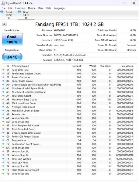 | Fanxiang F951 1 ТБ (USB 3.2 Gen2) | 1067,0 | 1067,1 |