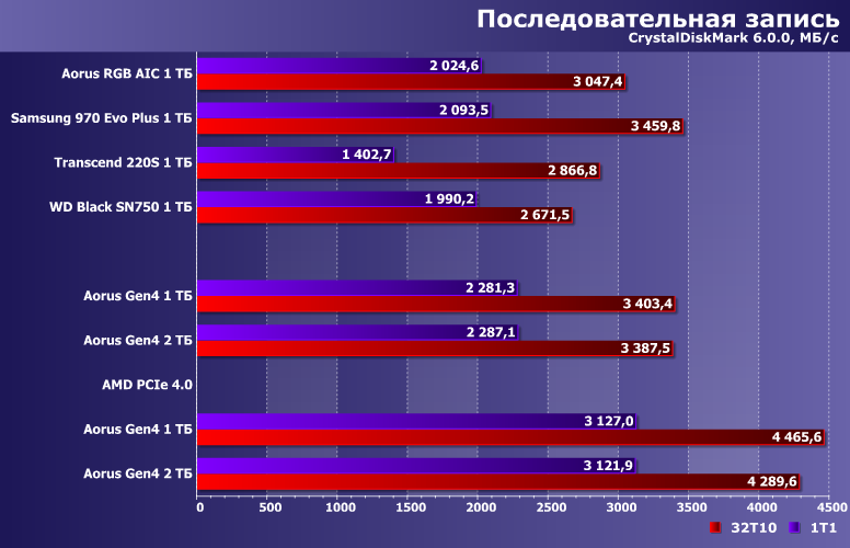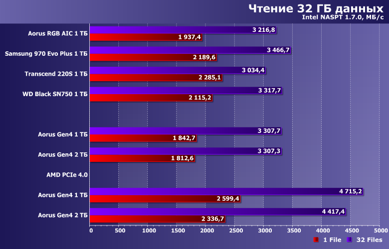 Результат оправдывает ожидания: пусть не обещанные (и демонстрируемые в синтетике) 5 ГБ/с, но близко к тому. Но иначе и быть не могло.