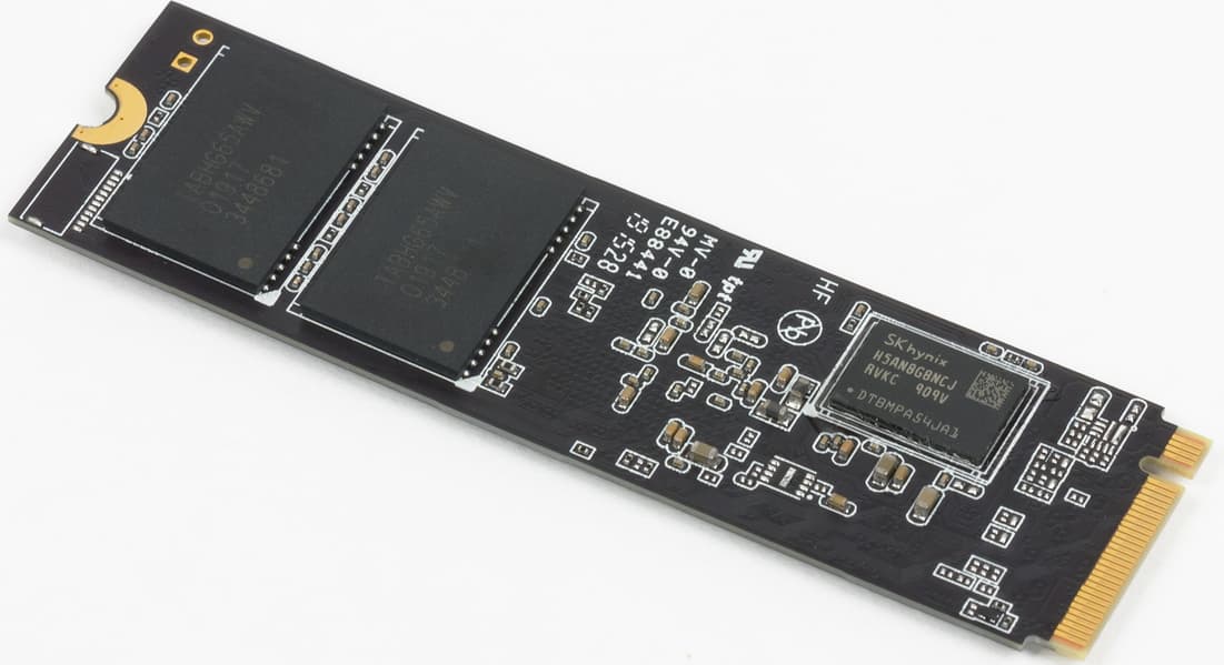 Максимальная плотность упаковки кристаллов памяти в микросхемы — на данный момент восемь, а максимальная емкость в этой линейке — 512 Гбит, так что для получения 2 ТБ общей емкости приходится использовать не менее четырех чипов. Поскольку и сам контроллер не слишком компактный, да для DRAM место нужно, применен двухсторонний дизайн платы — несовместимый со многими ноутбуками, но в ноутбуки на данный момент устанавливать накопители на Е16 все равно незачем. Для десктопов же это без разницы. В терабайтной модификации зато получилось использовать кристаллы по 256 Гбит, так что она по производительности должна быть не хуже (а иногда и лучше) старшей модели семейства. Накопитель на 500 ГБ, скорее всего, использует два аналогичных чипа на одной стороне платы, но с ним пока не все ясно: он был анонсирован последним, и заявленные скоростные характеристики ниже, чем для старших — что делает именно модели на 1 и 2 ТБ наиболее интересными (ведь если скорость не важна, то и с PCIe 4.0 связываться нет смысла).