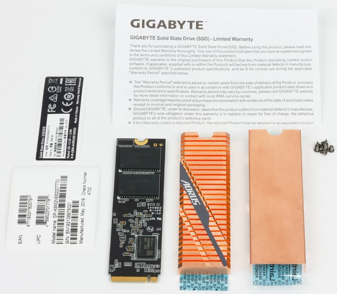 Как и в накопителях на Е12, имеется DRAM-буфер. В качестве такового используются две микросхемы DDR4L-2400 по 512 МБ или 1 ГБ — прямо как в AIC-версии предыдущей линейки Aorus. Гарантия — те же пять лет, что и в ее случае. Правда, разрешенный полный объем записи, который и ранее вызывал уважение, стал еще больше — теперь на терабайтный накопитель при сохранении гарантийных обязательств можно записать не 1,6, а 1,8 ПБ. На 2 ТБ — соответственно, 3,6 ПБ. В общем, старшие модели накопителей на флэше потихоньку перешли на петабайты «дозволенной» записи, так что об этом ограничении, как нам кажется, постепенно можно начинать забывать.