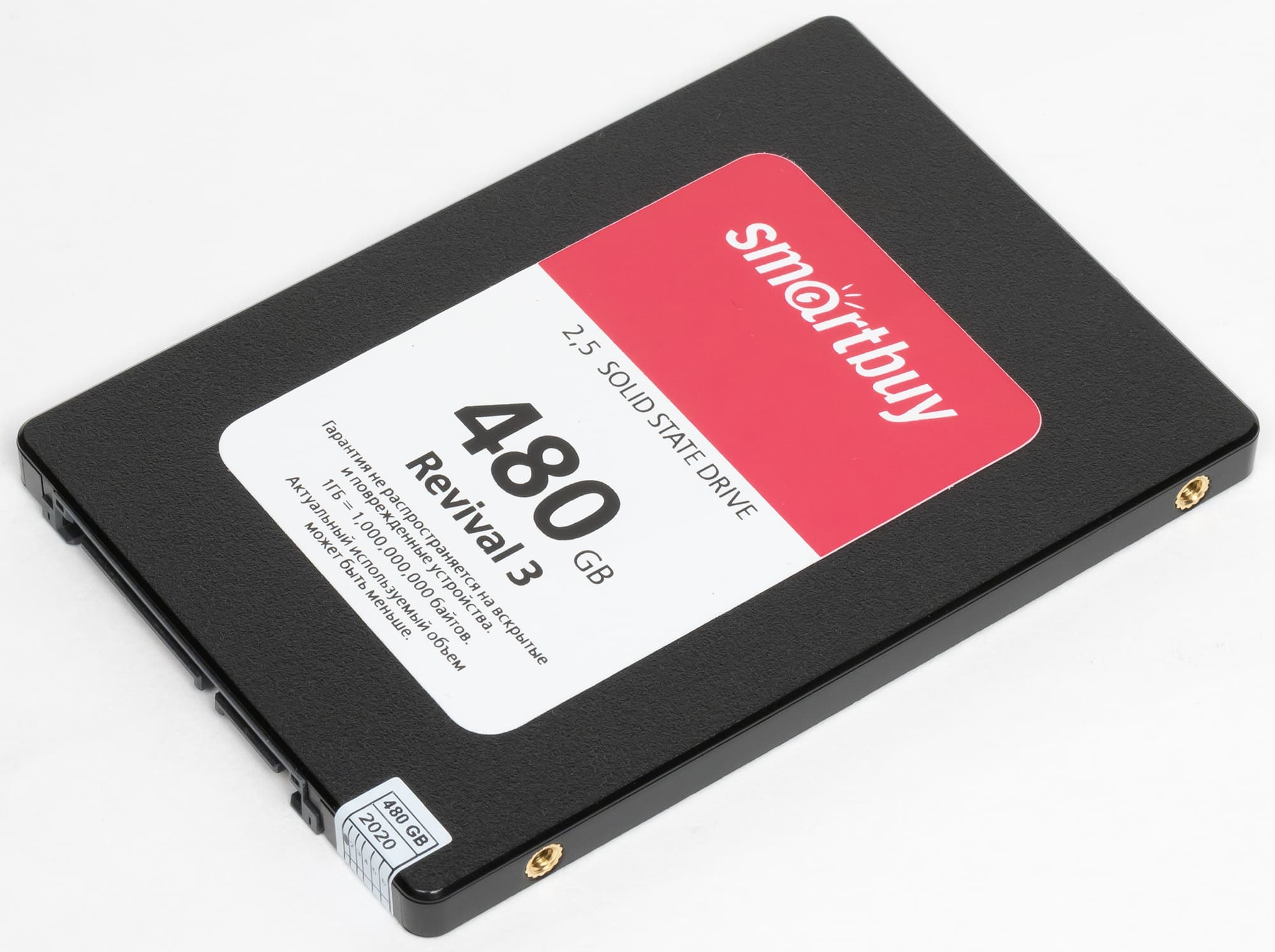 В отличие от Gigabyte и Seagate, в ассортименте SSD SmartBuy можно найти самые разные контроллеры. К чести компании, она старается «разносить» их по разным линейкам — и даже как-то отображать в названии семейства тип памяти. Например, первый Revival был построен на «буферном» Phison S10 и планарной TLC-памяти Toshiba, в Revival 2 компания перешла на более дешевый (но и лучше подходящий для TLC) S11, оставив планарную память, а Revival 3 — это оно же, но с 3D TLC. Первое время — как раз BiCS3, что и послужило причиной выбора данной модели вместе с остальными двумя сегодняшними героями.