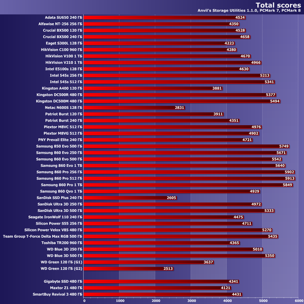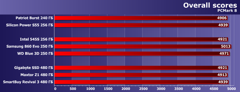 Собственно, как не раз уже было сказано, главная причина популярности бюджетных накопителей — в роли «системного диска» их практически невозможно отличить от небюджетных даже при помощи тестов. Не говоря уже о невооруженном взгляде — который, зато, прекрасно видит разницу между 250 ГБ и 480 ГБ. Тем более — за одинаковые (или близкие) деньги.