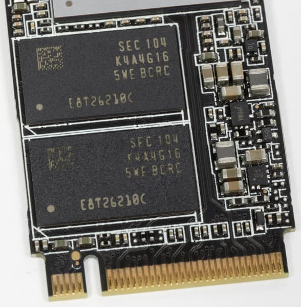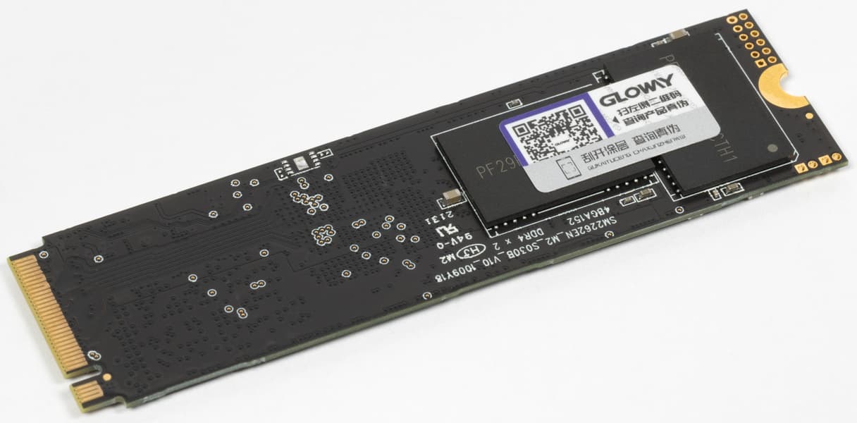 Сам SSD обычный — как уже не раз было сказано, что-то придумать в случае M.2 2280 вообще невозможно. Внимания заслуживает разве что двухсторонний монтаж, да надписи на плате, наталкивающие на мысль об использовании контроллера Silicon Motion SM2262EN.