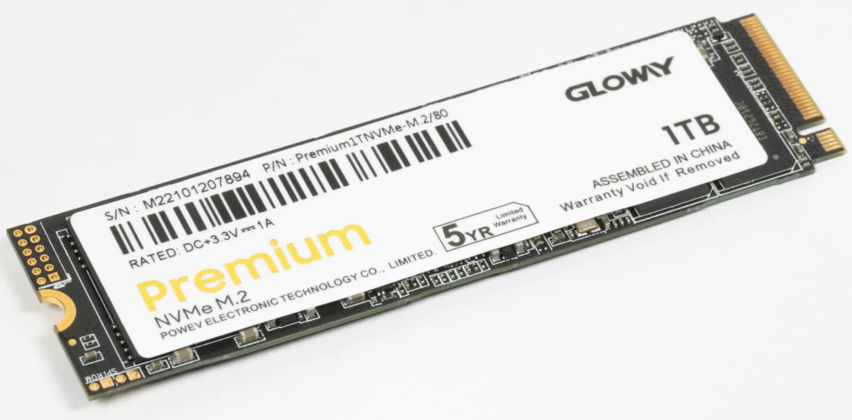 Вот и мы, отправившись на очередную рыбалку не смогли пройти мимо одного распродажного предложения с весомой скидкой. Правда размер ее сложно оценить — «базовая» цена этого SSD в периоды между распродажами особого пиетета не вызывает: за сопоставимые деньги можно уже и к дешевым двухтерабайтникам присматриваться. Почему так дорого? А серия Premium у Gloway к бюджетным не относится — здесь обещают DRAM-буфер, пятилетнюю гарантию, ограниченную «пробегом» (полным объемом записи — TBW) в 800 ТБ, то есть уровень чуть выше «базового». Последний у этого производителя тоже есть — так и называется: Basic. Но он особого интереса для нас не представлял. А вот в Premium когда-то встречался такой редкий контроллер, как Maxio MAP1001, да и распродажная цена выглядела интересно: за эти деньги в московских магазинах терабайтник найти в принципе на тот момент было можно, но было бы это нечто заведомо унылое и под SATA. В лучшем случае — нечто типа Digma Run S9, то есть бюджетный контроллер и TLC-память. С большей вероятностью — то же самое, но на QLC. А тут обещан совсем другой уровень. Так что, если поставить себя на место обычного массового покупателя, надо брать. А что тот самый покупатель может получить — сейчас и проверим.