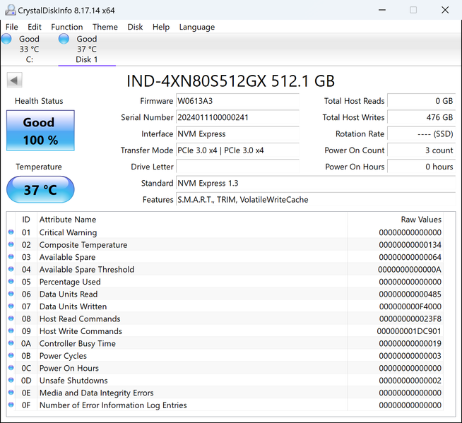 | SmartBuy Helix Pro 512 ГБ (PCIe Gen3) | 3102,4 | 2383,8 |