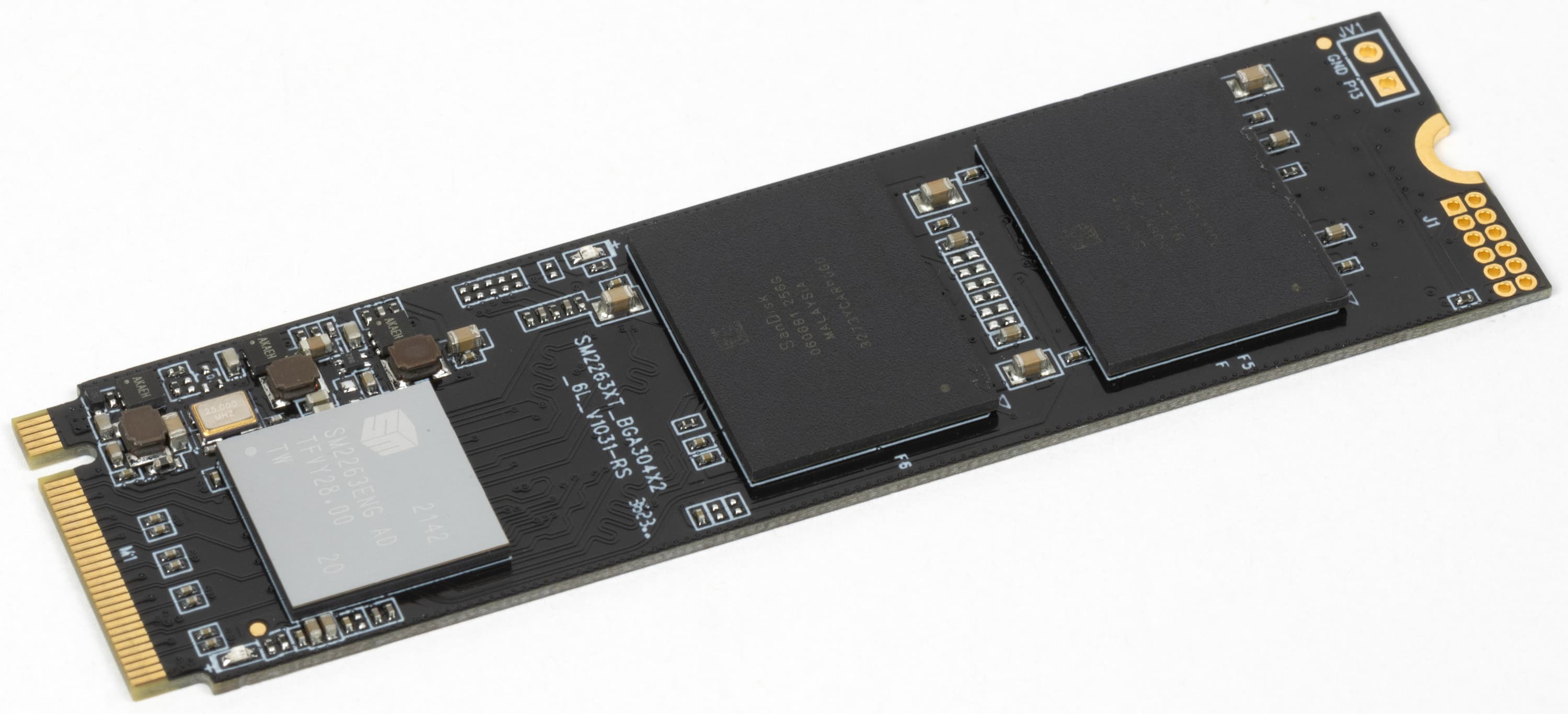 Есть ли смысл изучать его подробно? А почему бы и нет. Как уже сказано, такие SSD есть в массовой продаже — в том числе, представлены и на крупных маркетплейсах. Стоят недорого, свою работу выполняют. К тому же, (забегая вперед) ранее с конкретно такой конфигурацией мы ранее не сталкивались. Пусть итог встречи и предсказуем, но лучше один раз увидеть, чем сто раз предсказать. А заодно и можно полюбоваться на еще одну тенденцию современного бюджетного SSD-строения. Не уникальную, но, опять же, ранее мы ее не демонстрировали.