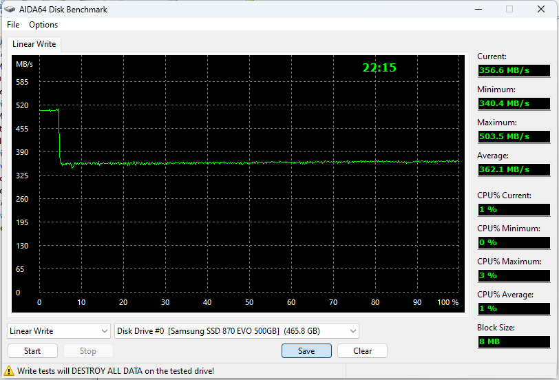 | Samsung 870 Evo 500 ГБ (SATA600) | 474,3 | 413,8 |