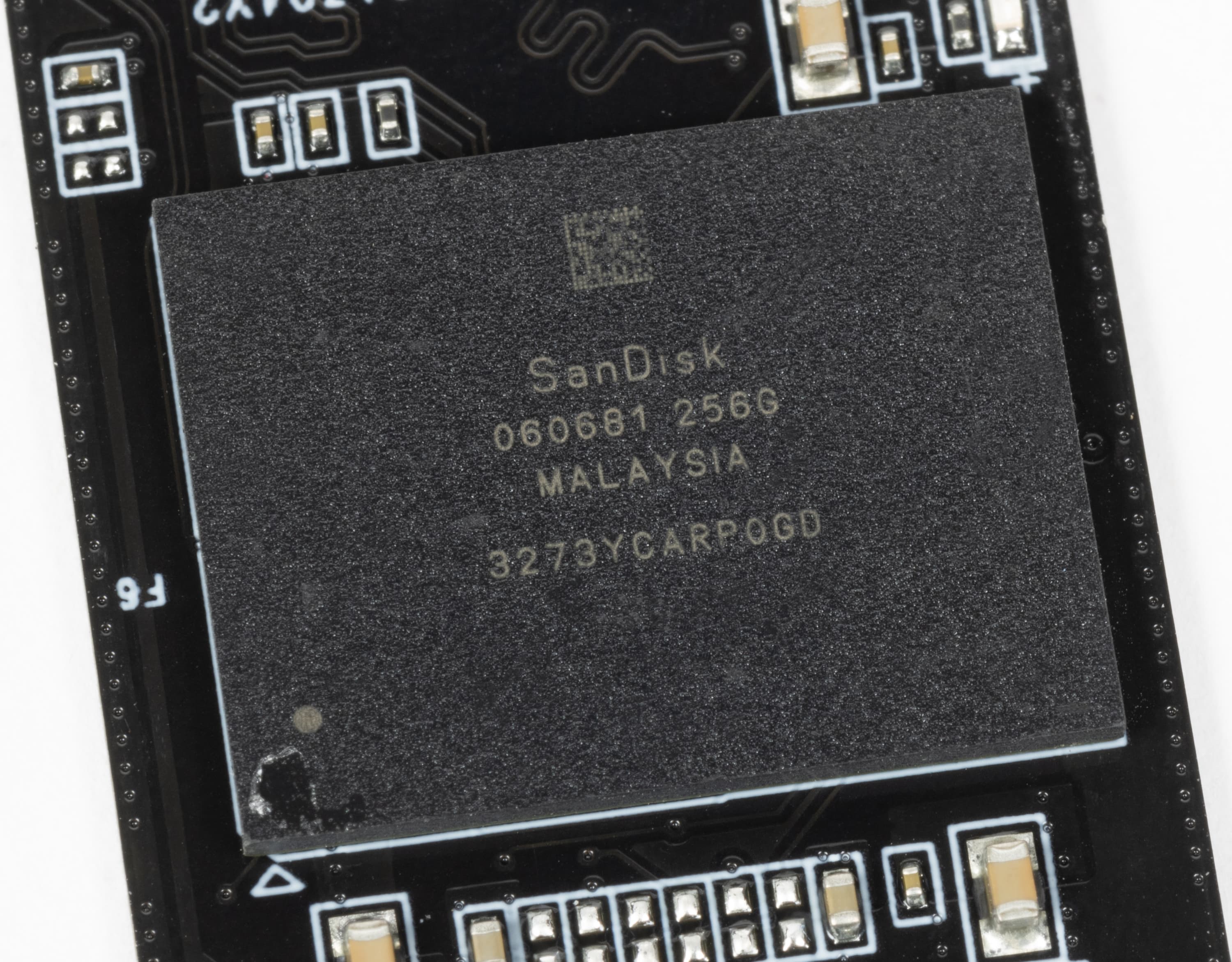 С памятью всё просто — 112-слойный TLC-флэш SanDisk и даже с родной маркировкой. Кристаллы тоже по 512 Гбит, причем не самые быстрые — всего 2-plane, а не 4-plane как в Netac. Ну хоть не самые медленные терабитные — опять же, и на том спасибо. Их тут вдвое меньше, поскольку и емкость вдвое ниже. Ничего неожиданного — в отличие от контроллера: здесь не SM2263XT, а SM2263. В чем различия? Только одно — один безбуферный, а второй внешнюю DRAM поддерживает. Но на плате ее, естественно, нет, да и места для этого не предусмотрено. Но никаких проблем это не вызывает — способность «середнячков» Silicon Motion прикидываться моделями начального уровня мы уже отмечали в обзоре Adata Legend 800. Только там компании пришлось использовать специальные PCB, поскольку SM2267 и SM2267XT по выводам несовместимы, а здесь и этой проблемы нет — микросхемы одинаковые. Достаточно просто не припаивать DRAM и залить прошивку для SM2263XT — и всё.