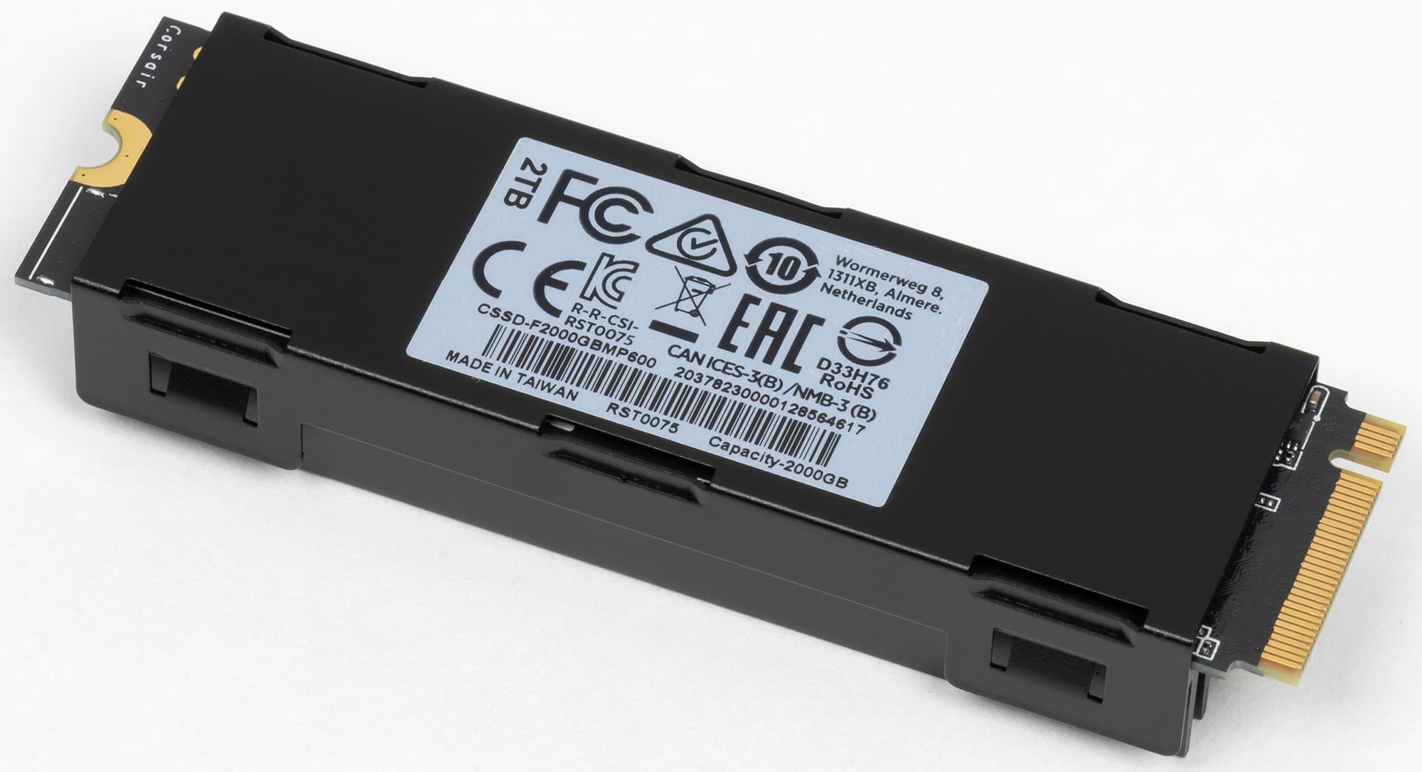 Если говорить о современном состоянии дел на уровне выше среднего, то есть смысл присматриваться к накопителям с поддержкой PCIe 4.0. Работать в режиме 3.0 они все равно будут — благодаря обратной совместимости. Причем и возможности последнего «выбирают» обычно полностью — поскольку рассчитаны даже на боле высокие скорости. Включая и первенцев этого направления — на базе контроллера Phison E16. Долгое время они стоили слишком дорого, поскольку более года никаких других SSD с PCIe 4.0 на рынке не было. Сейчас же в топовом сегменте развернулась конкуренция, причем и сам Phison в ней принимает участие при помощи обновленного E18 — так что тот же Corsair и аналоги нередко можно приобрести за 25 тысяч рублей или немногим больше. А выбирать тут (что не раз было сказано) нужно как раз в первую очередь по цене — все SSD на базе Е16 с одного завода и каких-то многообразий конфигураций у них не встречается. «Канонический двухтерабайтник» — 32 кристалла 96-слойной флэш-памяти BiCS4 3D TLC NAND Kioxia по 512 Гбит и два чипа DDR4L-1600 по 1024 МБ, т. е. два гигабайта на шине 16 бит. При этом пятилетняя гарантия с «ограничением пробега» 3,6 ПБ. Соответственно, его можно считать несуществующим — чтобы достичь такого уровня придется без сна и отдыха перезаписывать накопитель целиком каждый день. А такие нагрузки встречаются разве что в серверном окружении, да и то — не ко всем накопителям применимы.