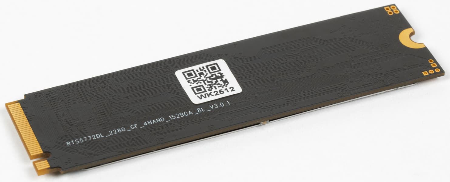 Это уже третья наша с ним встреча, что неудивительно — Realtek умеет продавать много и дешево, почему даже опоздав явиться на какой-нибудь рынок, довольно быстро занимает на нем заметную долю. Первый раз мы этот контроллер видели в паре с QLC-памятью Intel, второй — с быстрым TLC-флэшем Micron B58R, сейчас же тоже Micron, но ранее незнакомой на практике модификации B57T. И это на самом деле очень хорошо, поскольку такая память похожа на гибрид B58R и более старой B48R. Как и первая, она 232-слойная и с поддержкой высоких скоростей обмена данными с контроллером. Конкретно RTS5772 это не нужно (его внешний потолок — 5 ГБ/с), но более мощным решениям может и пригодиться. А вот организация кристаллов почти в чистом виде унаследована от B48R — они здесь по 512 Гбит 4-plane, а не 1 Тбит 6-plane. Увеличенное количество «плоскостей» в новой памяти призвано скомпенсировать рост емкости кристаллов, но несложно посчитать, что это лишь частичная компенсация. Количество кристаллов для той же емкости уменьшается вдвое, количество внутренних «плоскостей» увеличивается лишь в полтора раза — параллелизм падает.