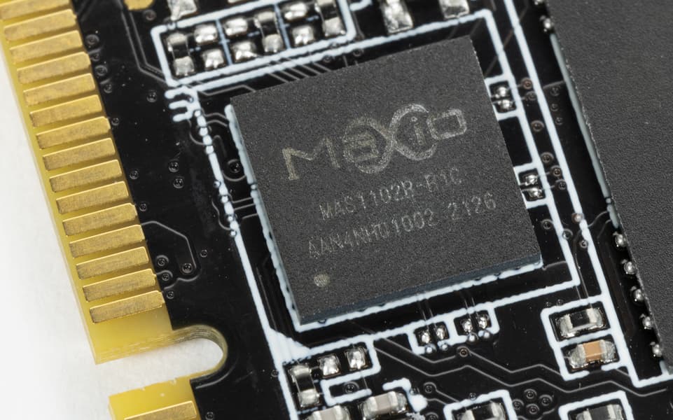 Насколько повезло нам? На плате обнаружился двухканальный контроллер Maxio MAS1102 — что скорее хорошо, нежели наоборот. Ну или, скажем так, может быть неплохо. В отличие от бюджетных продуктов Silicon Motion, неспособных не тормозить при записи с любой памятью, здесь бывают разные варианты и разные прошивки. Но это теоретические преимущества, поскольку с памятью скорее не повезло — 176-слойный QLC Micron (N48R). Аналогичный TLC-флэш у компании получился быстрым и недорогим, QLC — только дешевым. Собственные контроллеры Micron, впрочем, из такой памяти способны выжимать что-то приличное, но старенький MAS1102 для этого, естественно, слабоват. Так что можно заранее предположить, что читать данные будет неплохо, а вот с записью проблемы неизбежны. Маркировка же SpecTek на чипах памяти в данном случае скорее плюс. Да, лучшие зерна идут на Micron, а дочерний SpecTek — это уже второй сорт не брак. В данном случае может быть и третий сорт, поскольку в терминологии маркировок SpecTek «-AR = Relaxed Spec», то есть вообще худший случай. Но ведь бывает и неопределенный сорт: когда память закупается пластинами, а дальше ее уже сторонние компании нарезают, тестируют и корпусируют. И потому неопределенный, что под маркой Kingston, например, можно ожидать не худшего качества, чем у «родного» Micron, а можно и не ожидать. Но если маркировка вообще абстрактная — лучше в принципе ничего хорошего не ожидать :) Так что, повторимся, в данном случае и SpecTek — уже хорошо.
