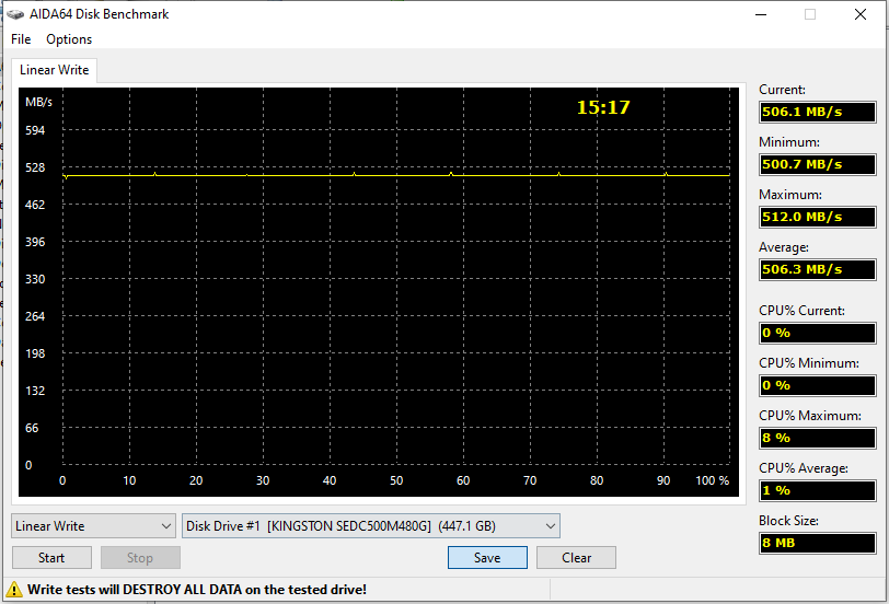 | Kingston DC500M 480 ГБ | 540,6 | 543,7 |