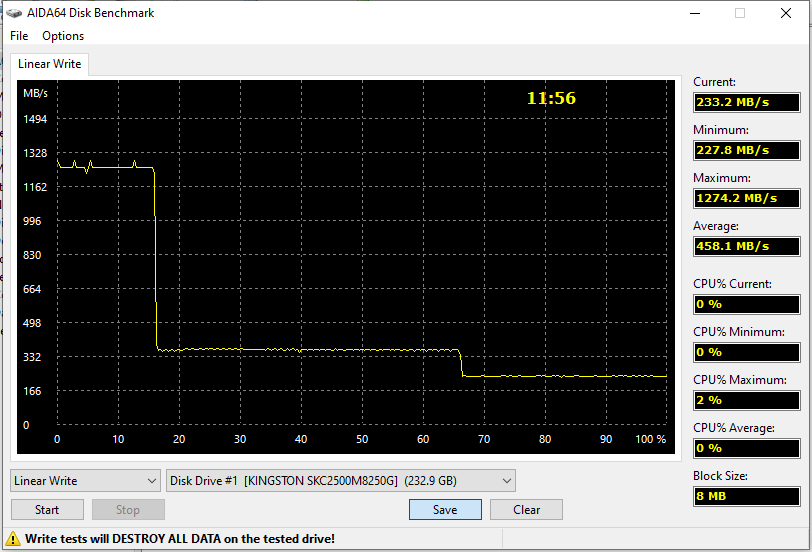 Поскольку и однопоточная запись на деле внутри превращается в многопоточную, разницы в результатах этих сценариев нет. Применительно к KC2500 во всяком случае — аналогичные проблемы приводят к аналогичным результатам.