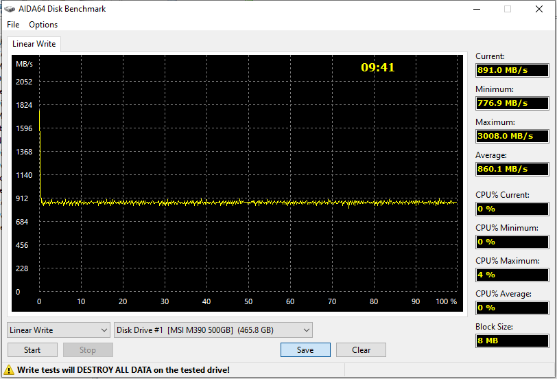 | MSI Spatium M390 500 ГБ | 12576 | 59906 | 115712 | 153064 | 378067 |