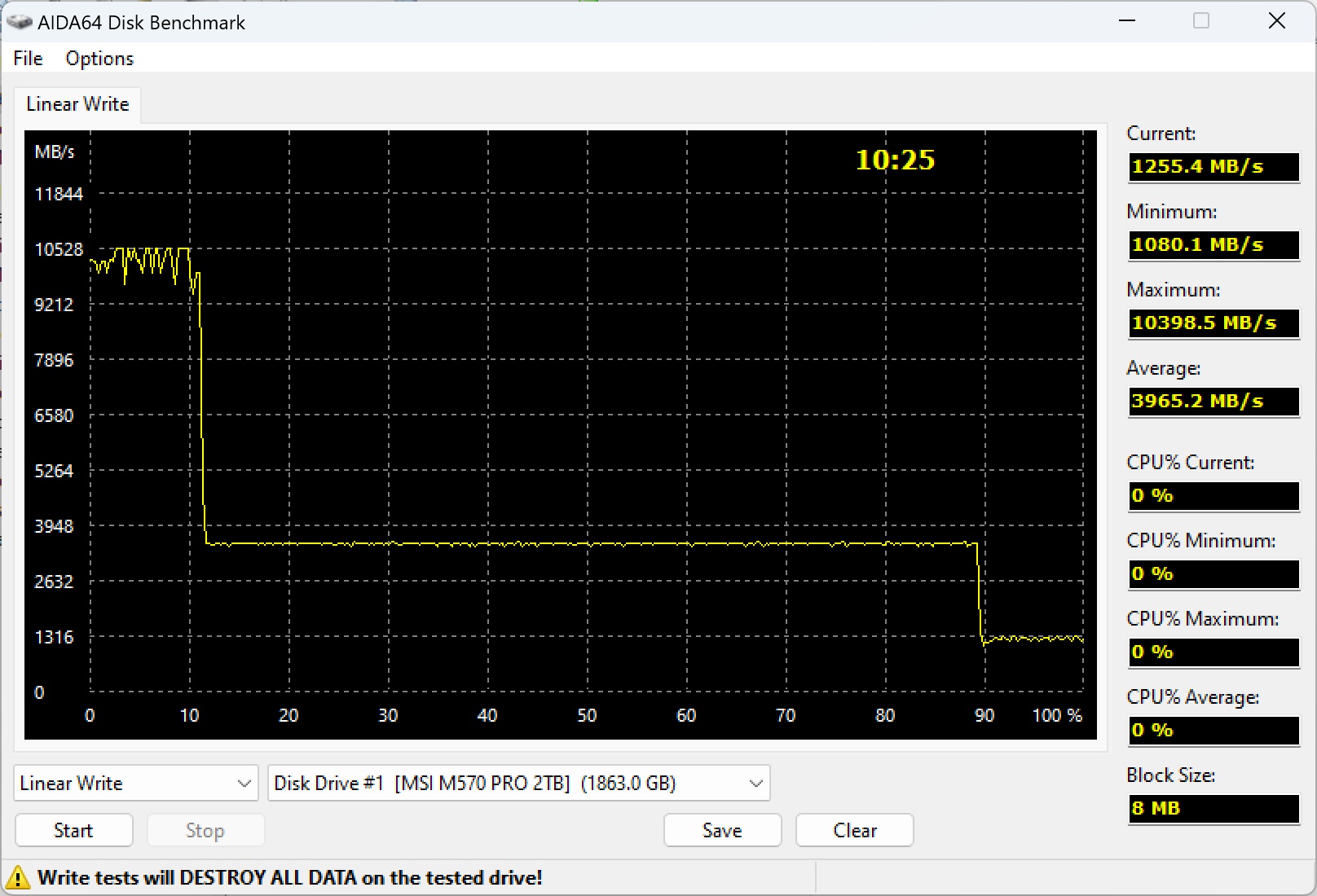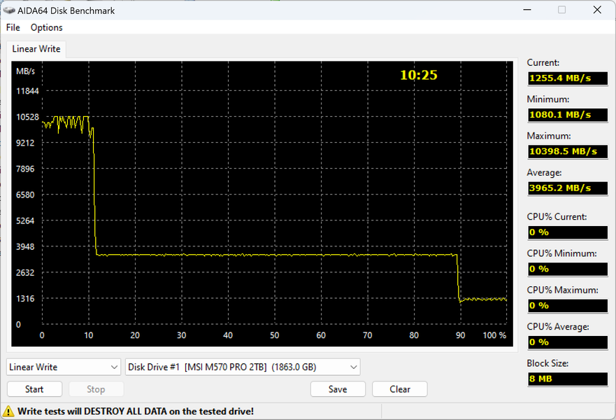 | MSI Spatium M570 Pro Frozr 2 ТБ (PCIe Gen5) | 5393,3 | 5380,5 |