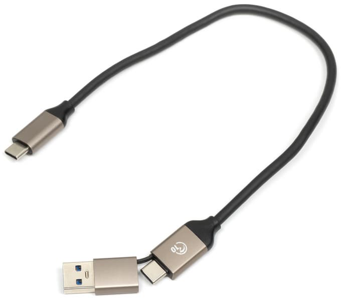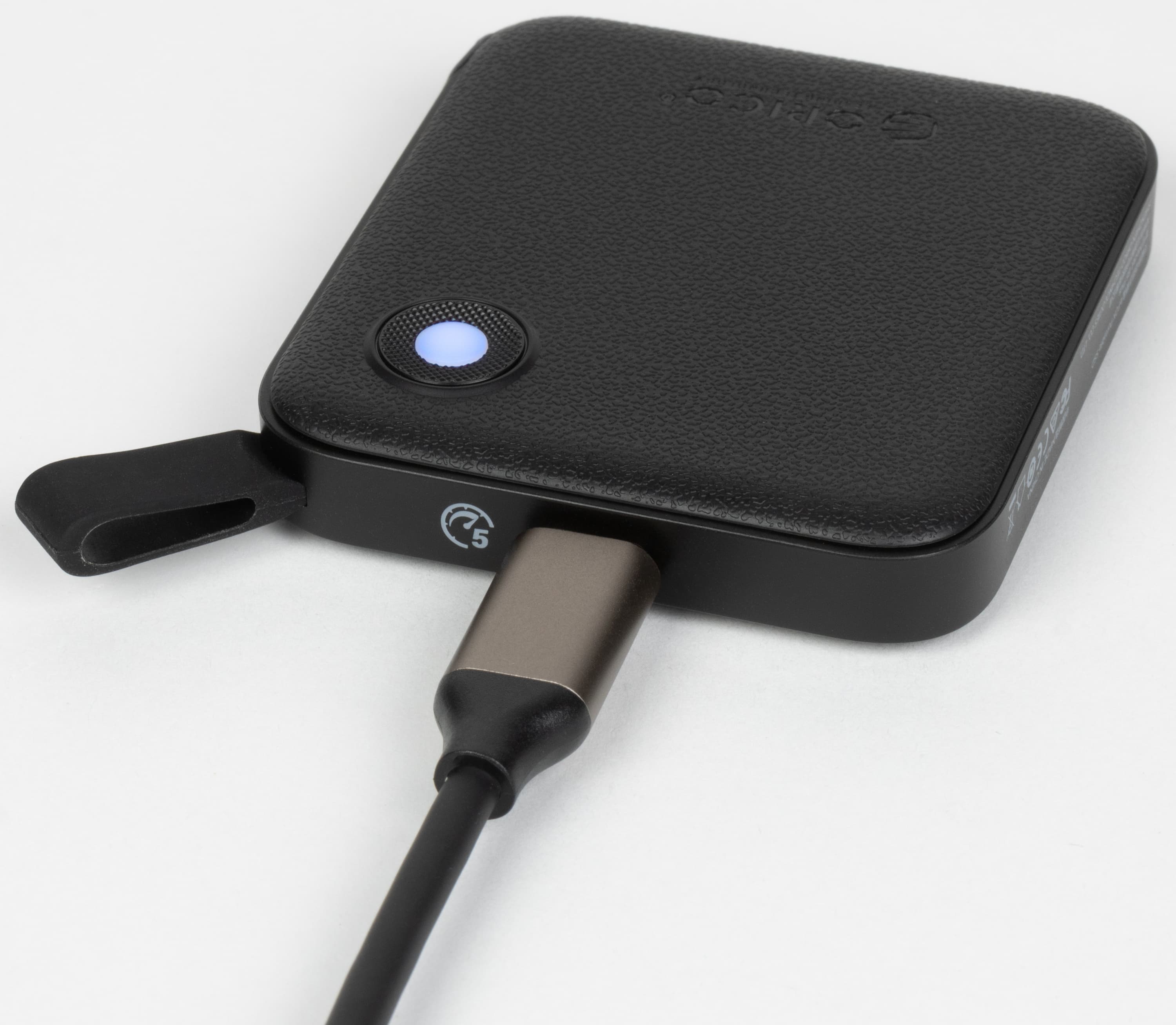 К комплектному кабелю же есть небольшое замечание — он такой же, как и к «компьютерным» внешним SSD прилагается, так что больше подойдет для использования с ноутбуком. О поддержке каких-либо протоколов быстрой зарядки никаких упоминаний, а при использовании кабеля в качестве универсального это может иметь значение. Брать же кабель из комплекта телефона чревато — у многих из них всё хорошо с зарядкой, но только USB 2.0 для передачи данных. Лучше, когда о таких вопросах заботится производитель, не заставляя покупателя подбирать «правильный» кабель отдельно, особенно когда покупатель не в состоянии этого сделать. Но со временем, думаем, и в этом направлении будут подвижки :) В остальном же без замечаний — недлинный (30 см), снабжен «встроенным» переходником «А — С», сертифицирован на скорости до 10 Гбит/с.
