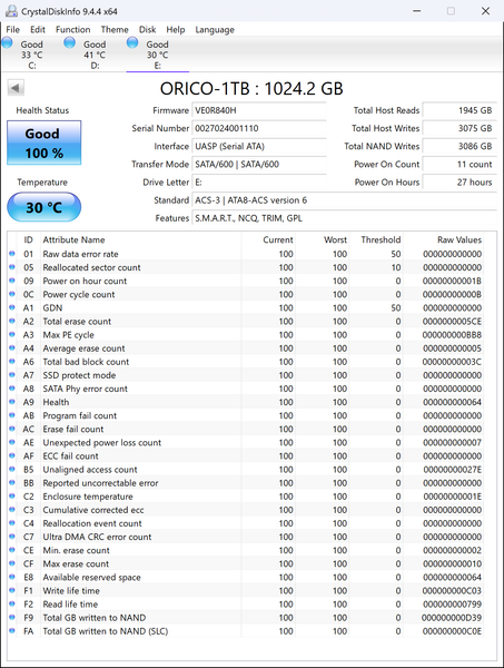 Со своей работой справляются — и ладно. В частности, нет никаких проблем с функционированием Trim, отображением SMART и подобным, что (до сих пор!) иногда вызывает проблемы у более мелких производителей. На удивление функционален даже термодатчик — работоспособный как минимум до 60 °C, хотя в последнее время правилом (не)хорошего тона становится ограничивать показания даже не 54, а всего 47 °C. На этом хорошие новости по внутреннему устройству можно считать законченными.