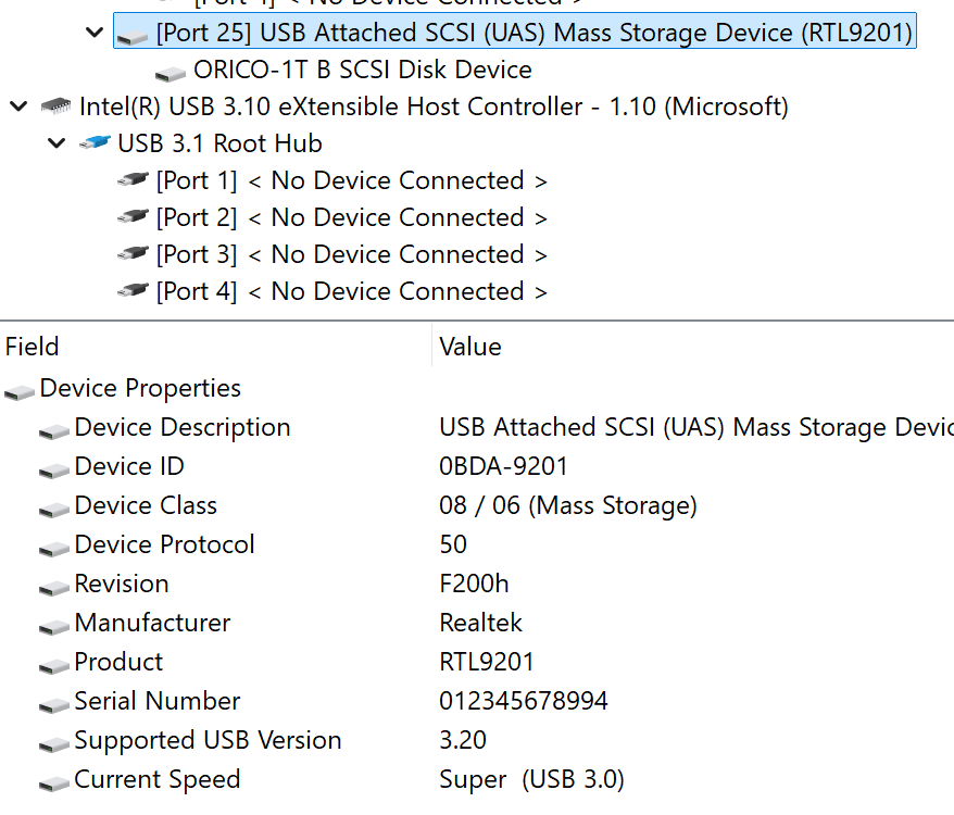 При этом если плясать от скорости интерфейса, то понятно, что ничего отличного от USB—SATA мы здесь не найдем — мосты USB—NVMe только начинаются с 10-гигабитного USB. И здесь действительно стоит довольно редкий Realtek RTL9201. Но редок он лишь потому, что немного опоздал на рынок, который своими мостами успели завалить ASMedia и JMicron. И ничего нового производителям конечной продукции уже особо и не нужно — продукция разных разработчиков ведет себя одинаково. А Orico вообще очень активно закупает разные чипы Realtek, так что, скорее всего, именно эти мосты компании обошлись просто немного дешевле.