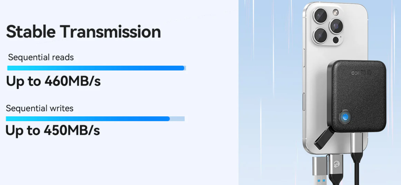 Что в таких условиях остается делать производителям? Искать новые ниши — позиционируя свои устройства, например на использование совместно с телефонами, а не компьютерами. А нужен ли внешний SSD девочке с айфончиком? Иногда и нужнее, чем типичному компьютерному энтузиасту, что забавно. У последнего в современных условиях может и не оказаться каких-то «своих» данных в больших количествах, а у девочки, по крайней мере, найдется множество фотографий. Которые желательно куда-то копировать, дабы не потерять. Иногда и в полевых условиях. И не только в качестве резерва, а чтобы освободить память телефона — которая теми самыми фото и видео забивается очень быстро.