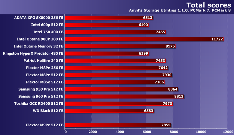 Впрочем, если учесть и результаты тестов высокого уровня, то окажется, что Plextor M9Pe в определенной степени может считаться заменой M8Pe, а некоторые ранние NVMe-накопители, не говоря уже о «первенцах» рынка SSD с интерфейсом PCIe, он вообще обгоняет. Однако на большее он замахнуться не в силах — на установление новых рекордов эта модель (да и другие подобные) не рассчитана.