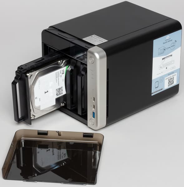 Большинство сетевых накопителей настольного формата на четыре отсека очень похожи не только внешне, но и по своей внутренней конструкции. Не стала исключением и рассматриваемая модель.