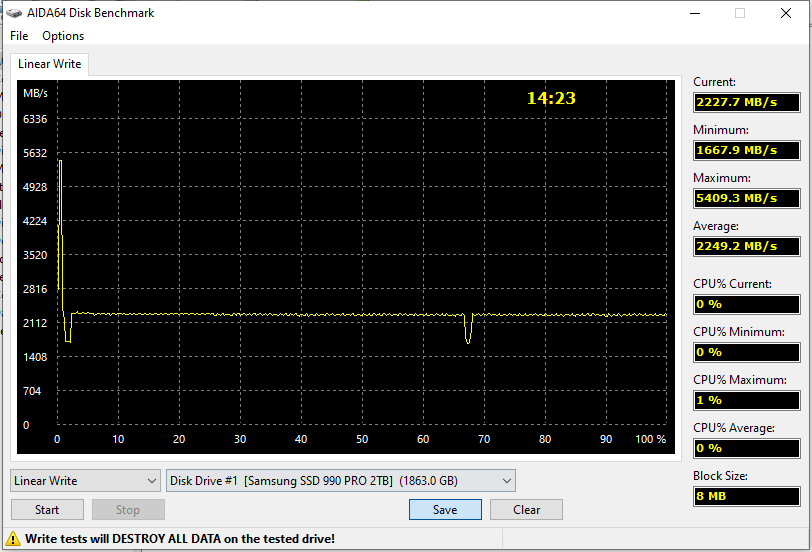 | Samsung 990 Pro 2 ТБ (PCIe Gen3) | 3574,2 | 3574,1 |