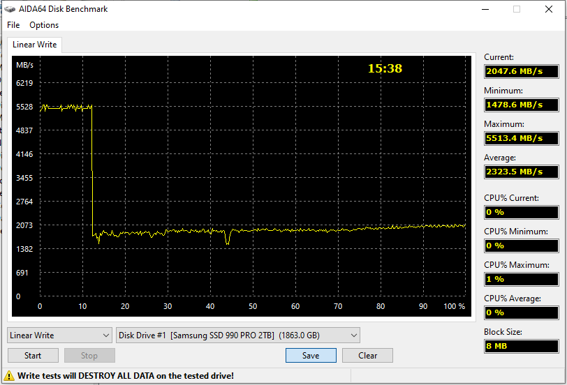 | Samsung 990 Pro 2 ТБ (PCIe Gen3) | 2632,9 | 2599,8 |