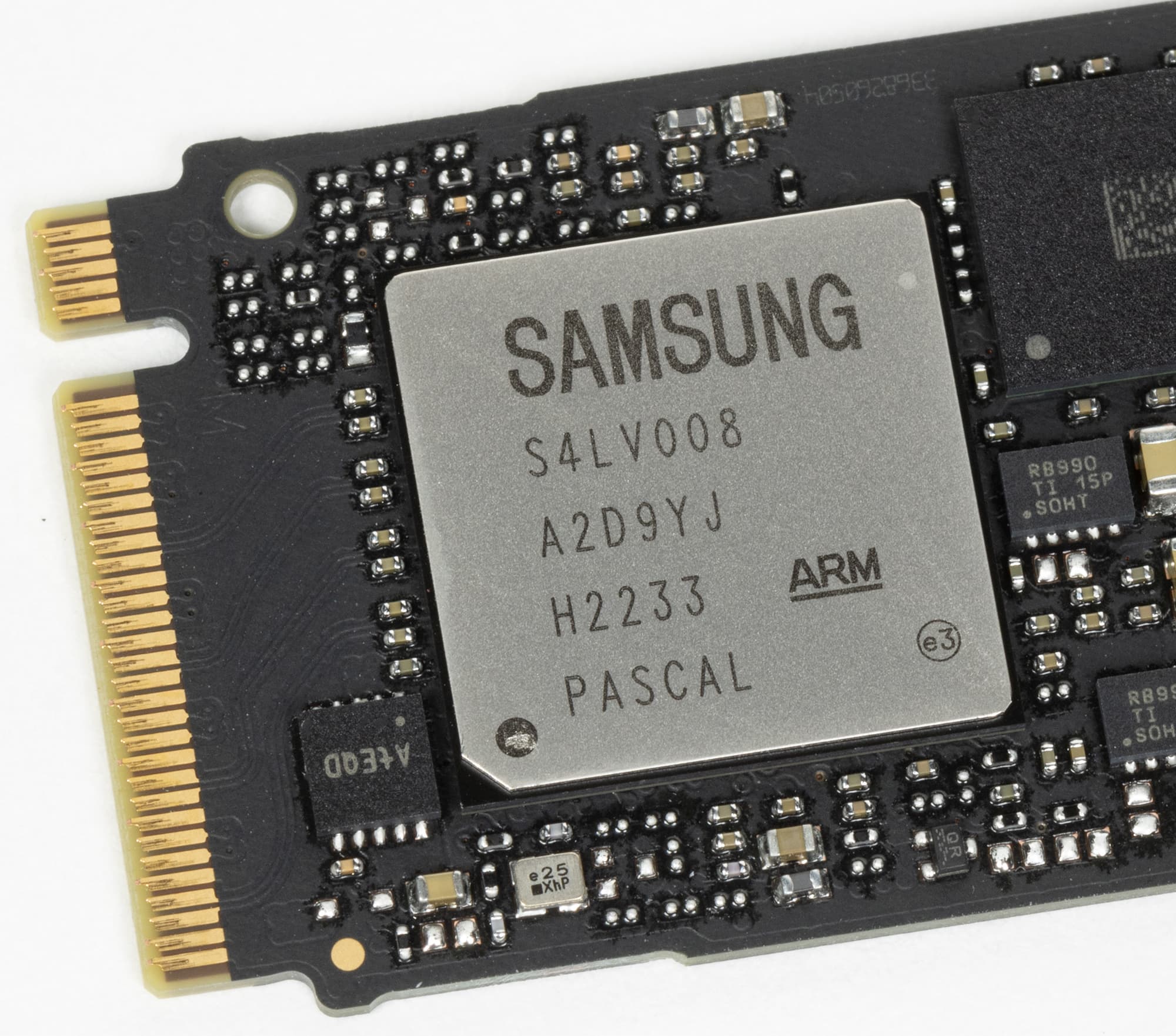Память с новым интерфейсом потребовала модифицировать и контроллер. Хотя нельзя сказать, что чип с кодовым названием «Pascal» стал чем-то радикально новым — по сути это доработанный «Elpis» предыдущего семейства. С исправлением ошибок, доработкой алгоритмов и т. п., но не более того — даже техпроцесс остался старым. Многие бы предпочли что-то более тонкое, поскольку это позволило бы снизить энергопотребление и тепловыделение, которое у топовых контроллеров при полной загрузке великовато, но этого не случилось. Зато появился режим «Full Performance Mode», в котором полностью отключаются технологии энергосбережения, что позволяет набить немного больше попугаев в некоторых тестах — пусть и ценой увеличения энергопотребления. Включается, как и положено в фирменной утилите. На самом деле, нового тут ничего — первой в эти игры начала играть WD еще года четыре назад. Равно как и комплектуют свои SSD радиаторами многие производители, да и сам Samsung без лишнего шума начал это делать еще в предыдущей линейке. Другой вопрос, что теперь радиатор получит RGB-подсветку, но, во-первых, этих версий надо еще подождать, а во-вторых, опыт 980 Pro показывает, что за «фирменную» наценку за радиатор от Samsung можно и что получше на рынке поискать (если вообще хочется — о необходимости вообще лучше умолчать).