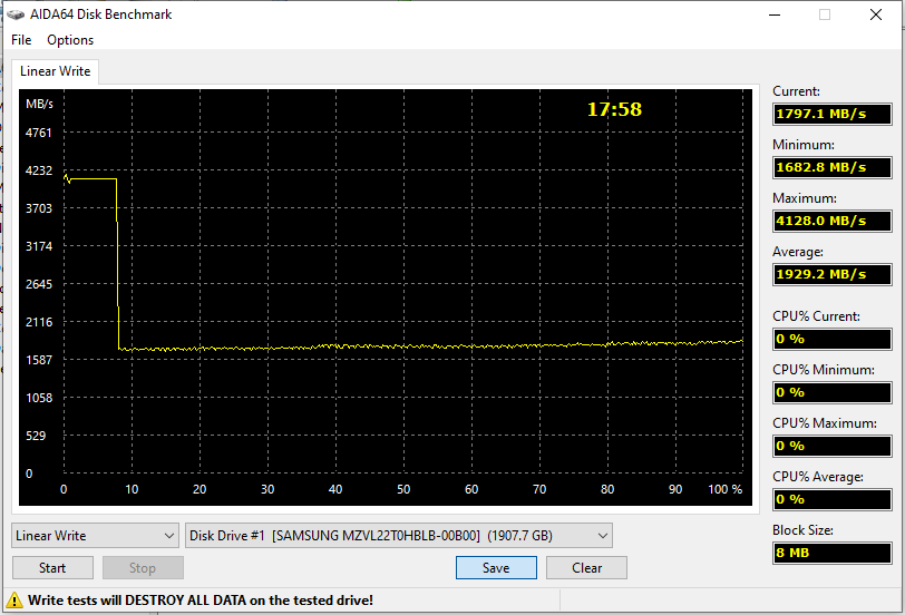 Пока емкости SLC-кэша хватает на всё, выигрыш по сравнению с предыдущим поколением небольшой. Когда не хватает — заметный. Причем и многие конкуренты в этом случае сдуваются. А некоторые просто используют под кэш все свободные ячейки, что ослабляет эту проблему, но усугубляет некоторые другие.
