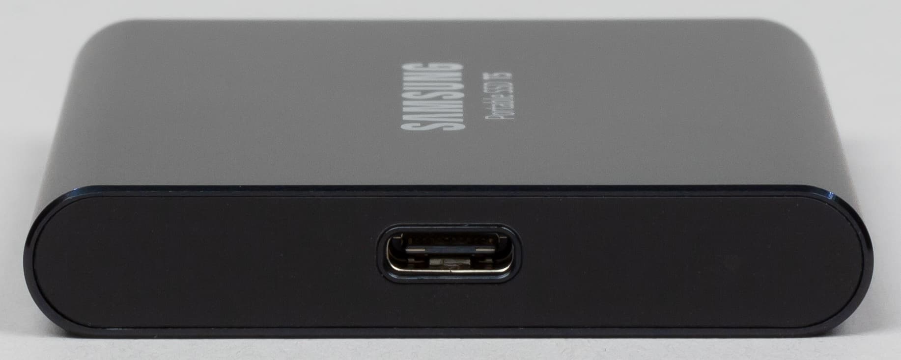 Заметим, что внешние винчестеры на 1-2 ТБ не просто продолжают продаваться — все еще анонсируются новые линейки. А раз на них есть спрос, то этого объема уже достаточно для многих сфер применения, и теперь такой объем обеспечивают и SSD. Винчестеры обходятся дешевле, но ни один внешний накопитель на их базе не может похвастаться размерами 74×57×11 мм при массе 51 г. Минимум, который мы встречали еще в эпоху винчестеров с пластинами 1,8″ — 98×60×9 мм при массе 85 г, но развитие этого сегмента закончилось на емкости всего в 250 ГБ почти десять лет назад (во многом потому, что стоимость хранения данных во флэш-памяти снизилась практически до того же уровня). В отличие от флэшки, в кармане Samsung Т5 уже заметен, причем он требует подключения к хост-системе при помощи кабеля, но из устройств высокой емкости он один из самых компактных, даже если сравнивать с «одноклассниками». Например, Transcend ESD220C (также с разъемом USB Type-C) имеет размеры 77×56×10 мм и массу 52 г, несмотря на пластиковый корпус и емкость не более 480 ГБ.