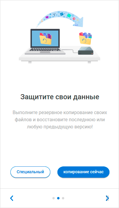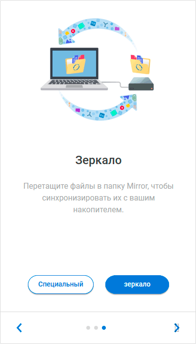 Итак, по сути, нам предлагаются два варианта резервного копирования данных: можно создать «зеркальные» папки на компьютере и винчестере, которые будут синхронизироваться автоматически, а можно и просто создавать копию всего.