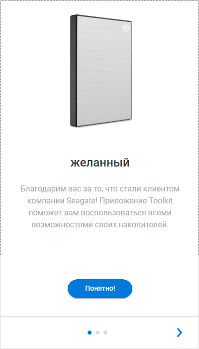 С точки зрения любой системы, внешний винчестер — просто один из накопителей, с которым можно работать так же, как с любым внутренним, и специальные программы для этого не нужны. Однако производители обычно комплектуют свои устройства фирменным ПО — или хотя бы предлагают его скачать. Не является исключением и Seagate: на сайте компании доступна универсальная программа Toolkit. Поскольку она рассчитана на работу со всеми продуктами компании, самым «простым» из них (в том числе Backup Plus Slim) доступна лишь небольшая часть ее возможностей. Желающие могут ознакомиться с подробной документацией, а мы пробежимся по основным функциям вкратце.