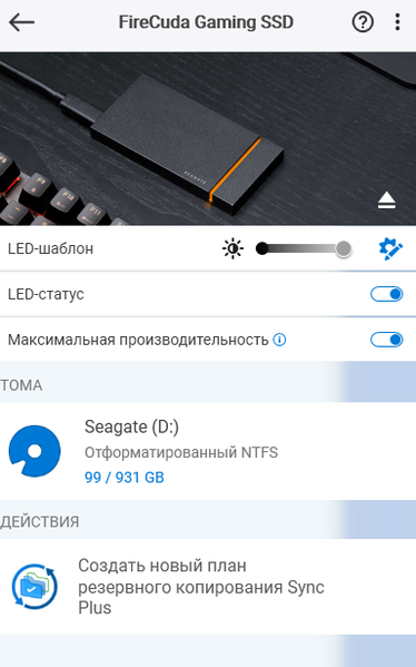 Как именно — подробно изучим чуть позже. Пока же отметим, что cветодиодная полоска в данном случае не просто светится — она настраиваемая RGB. В фирменном приложении можно поиграться с цветами, выбрать один из сценариев их переключения и т. п. Кстати, здесь же можно и... просто выключить режим USB3 Gen2×2 если вдруг почему-то он вызывает проблемы совместимости — и просто откатиться к обычному Gen2. Собственно, еще один довод в пользу ненужности ASM2362 после появления ASM2364. Понятно, что стоят они по-разному, так что, если покупать отдельную коробочку где-нибудь на Aliexpress, сделанный выше вывод кажется надуманным: за устройство на базе ASM2364 приходится выкладывать долларов 35 и больше, а ограничившись USB3 Gen2 можно и в $15 уложиться. Но экономия значительной только кажется — вовнутрь придется устанавливать относительно быстрый SSD — а значит и не самый дешевый. Так что даже если ограничиться $150, то получим суммарную стоимость готового устройства в $165 и $185 — двукратная разница на первый взгляд быстро начинает стремиться к 10%. Ценообразование же готовых устройств — вообще своеобразное, и себестоимость тут далеко не главный фактор. Это, впрочем, часто работает как раз против самых быстрых накопителей, поскольку даже если ограничиваться только ассортиментом Seagate, то FireCuda Gaming на 500 ГБ стоит почти столько же, сколько BarraCuda Fast на целый терабайт, а скоростной терабайтник вообще сопоставим по цене с бюджетным ноутбуком.