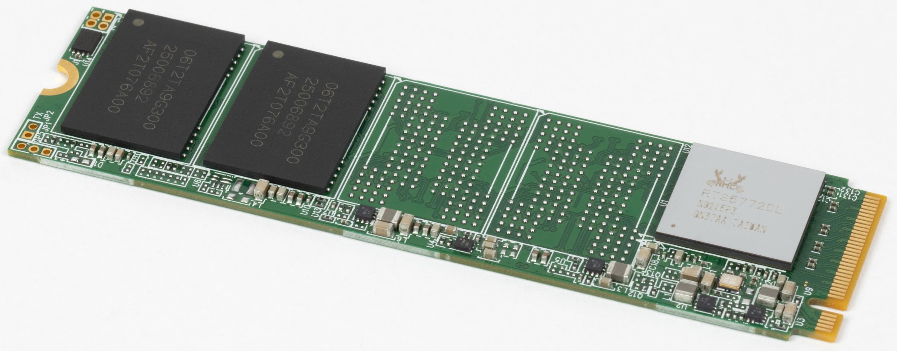 Как уже было сказано выше, это наша первая встреча с такой платформой, но уже вторая — с этим контроллером. Обзор AGI AI818 на том же Realtek RTS5772, но с терабайтом 144-слойного QLC-флэша Intel был опубликован на сайте еще прошлым летом. И это как раз идеальный ориентир, поскольку и контроллер одинаковый, и емкость одинаковая, и даже размер кристаллов памяти одинаковый (и там, и там терабитные), а вот ее тип — разный. Но в современных условиях при покупке недорогого SSD часто остается лишь гадать — каким он будет. Причем и всю экономию производители любят класть себе в карман, так что и цена тут не помощник. Зато после покупки уже не спутаешь. Вот точные размеры этой самой разницы нам и интересны.