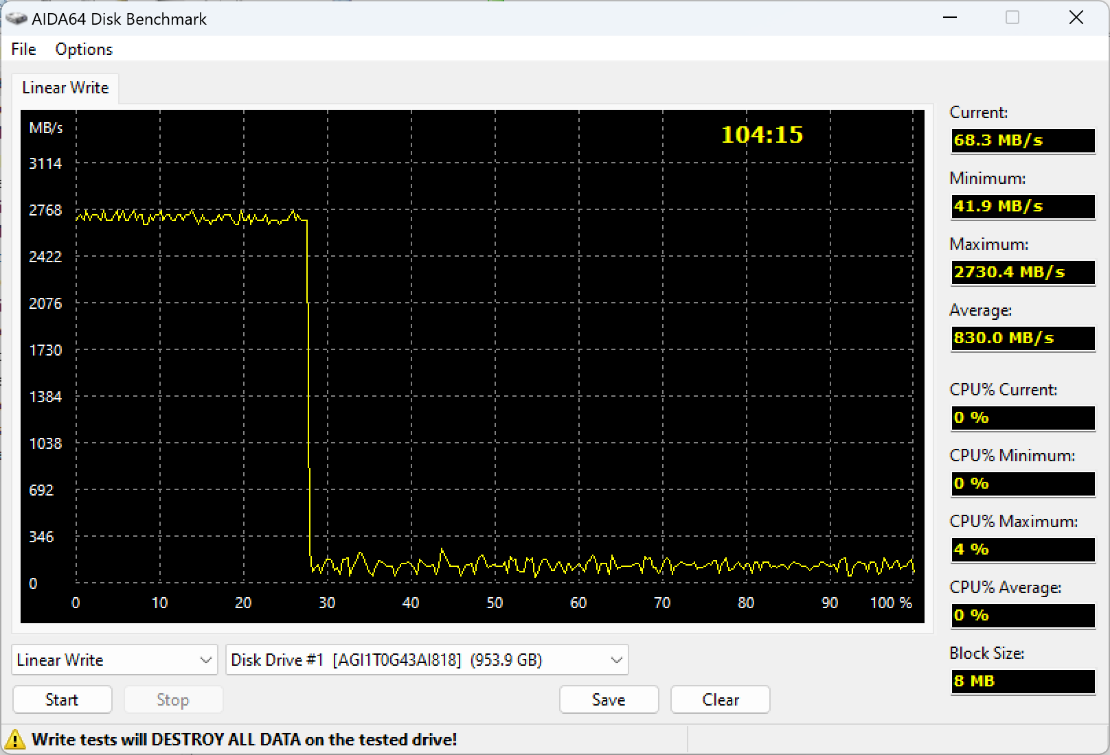 | AGI AI818 1 ТБ (PCIe Gen4) | 2921,0 | 2932,5 |