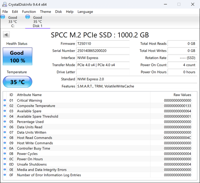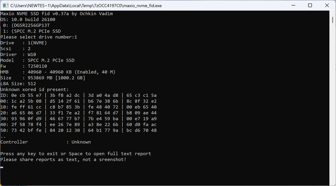 От памяти это не зависит — ровно та же ситуация и с YMTC: TLC или QLC — неважно. Зависит только от версии кода, на базе которого написана прошивка. Поэтому совсем недавно у нас не возникло никаких трудностей с идентификацией Dahua C970 Plus, поскольку ее прошивка корням восходила к 2023 году. Здесь же старого кода быть не может, поскольку память относительно новая — с соответствующим результатом.