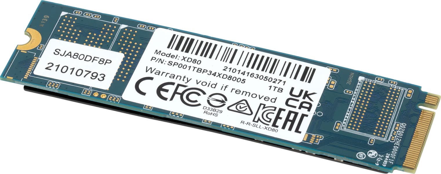 Давным-давно флагманом модельного ряда компании был P34A80 — как раз на базе Phison E12 и 64-слойной TLC-памяти Kioxia BiCS3. Впрочем, на тот момент все накопители на этом контроллере были такими, благо Phison процесс производства контролирует очень плотно, не ограничиваясь простой отгрузкой контроллеров как некоторые. Далее начались колебания то вместе с линией партии, то врозь — сначала память сменилась на Intel, а потом и вовсе под тем же названием в продажу пошли SSD на Silicon Motion SM2262. Возможно, в таком виде и сейчас отгружаются, так что компании потребовалась новая марка. В современном стиле, не лишенном определенной путаницы. Например, US70 — это уже знакомый нам накопитель с интерфейсом PCIe 4.0 на контроллере Phison E16 и TLC-памяти Kioxia BiCS4, UD70 — бюджетное решение на Phison E12S и QLC NAND Micron, а XD80 — нечто среднее между ними: E12S и TLC. Почему «80»? А кто его знает :) Тем более, есть и заслуживающая внимания информация, что (по крайней мере в младших модификациях) встречается и контроллер Realtek RTS5762 — который, конечно, тоже восьмиканальный и с DRAM, но производительностью не блещет, однако нам попалась именно «каноническая» модель на Е12S, сильно напоминающая изначальный P34A80, но совсем с другой памятью.