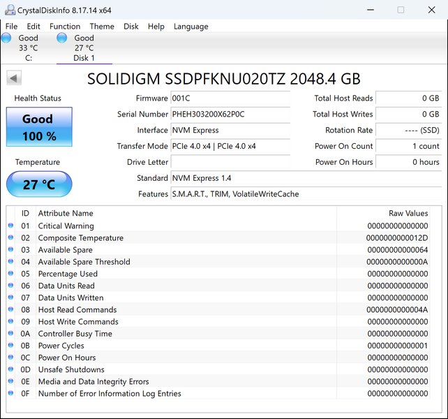 Стоило инженерам Solidigm избавиться от контроля бывшего руководства, как сразу и выпущен был P41 Plus — на безбуферном Silicon Motion SM2269XT и с официальной поддержкой PCIe Gen4. Память же осталась прежней, поскольку ничего новее 144-слойной N38A компания на тот момент еще не разработала. То есть, по сути, P41 Plus — удешевленная версия 670p, аппаратно очень похожая на массу бюджетных SSD на той же памяти и контроллерах, представленных на рынке. Претензий к чему, впрочем, не было — поставки 670p тоже не сразу прекратились. Да и гарантийные условия для новой модели даже получше — те же пять лет, но уже с «разрешенным» полным объемом записи (TBW) 800 ТБ против 740 ТБ.